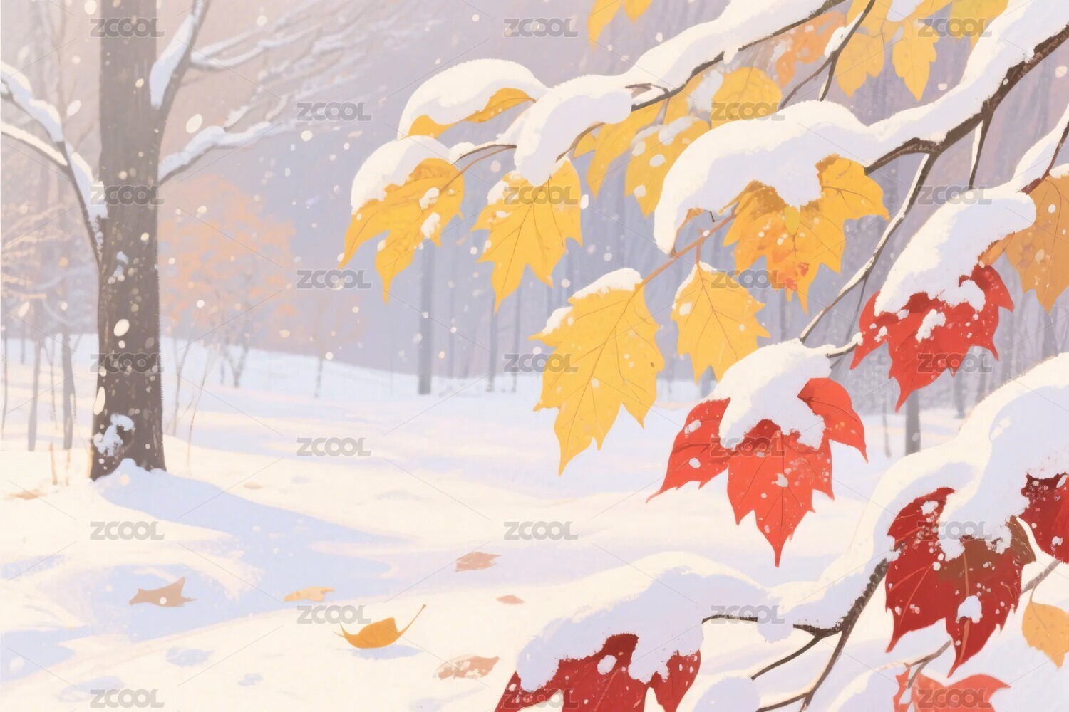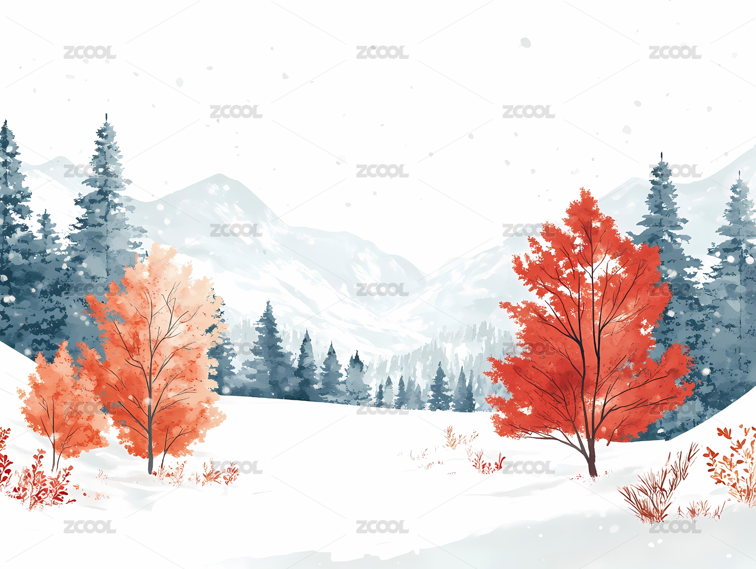 雪,冬天,雪地,草地,树木,风景,自然,远山,白雪,落叶