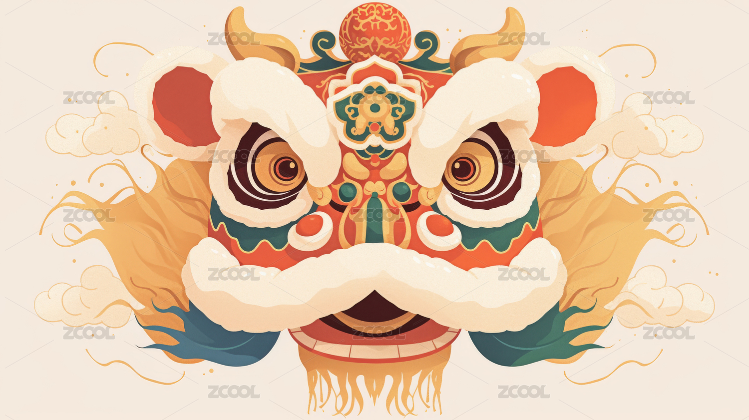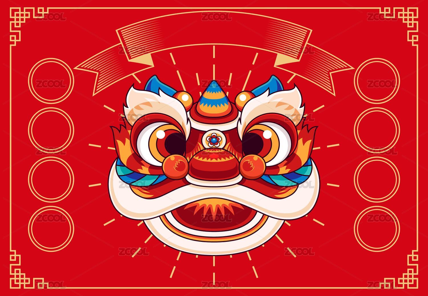 红色喜庆新年祝福传统醒狮插画,春节舞狮贺