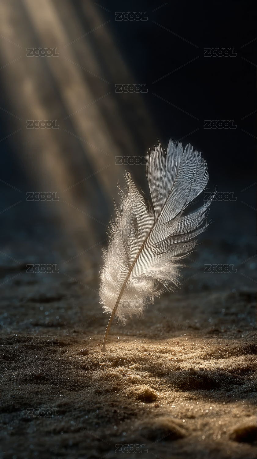 柔和光线下的漂浮羽毛素材