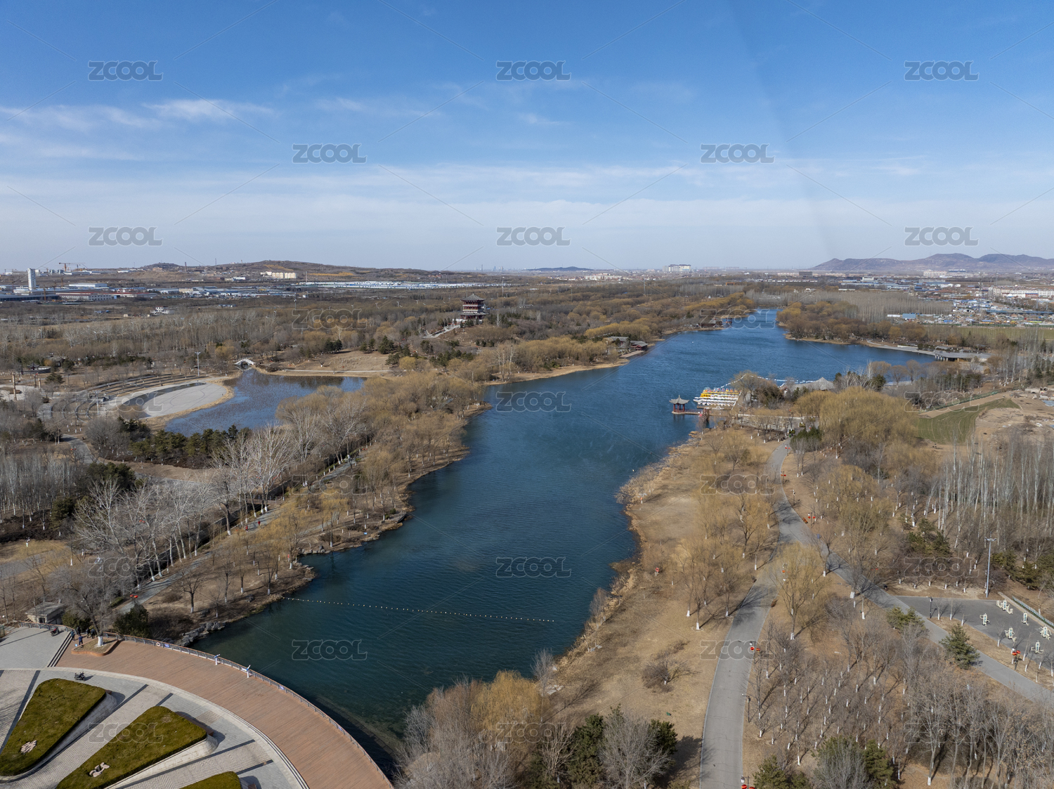 河北省石家庄市滹沱河生态旅游区航拍图片