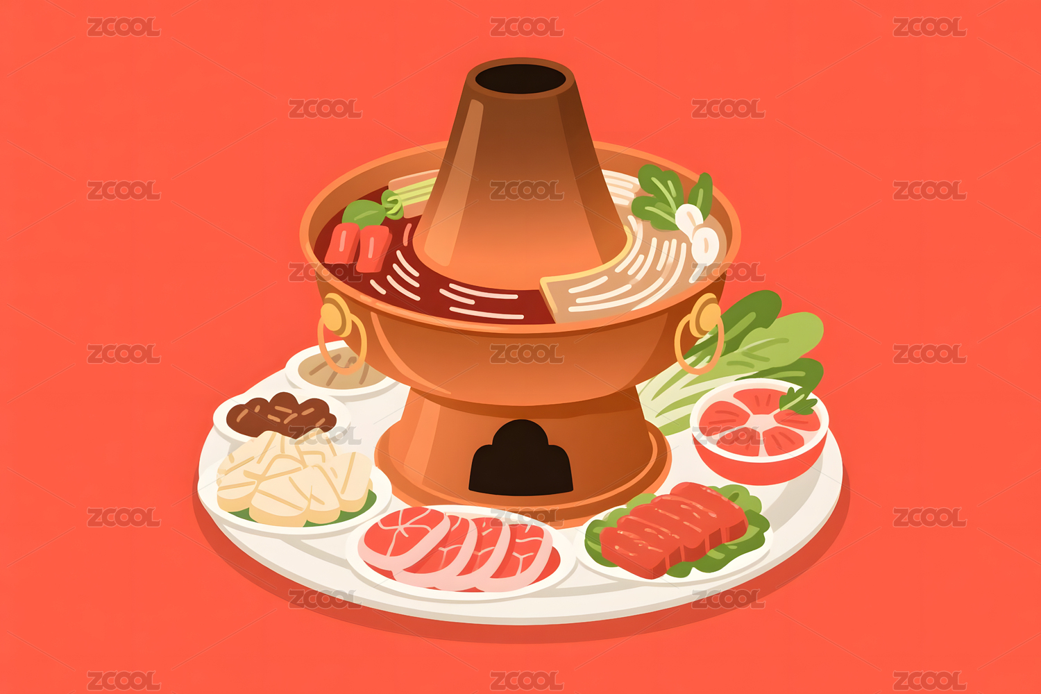 热气,蒸汽,圆形,汤汁,食材,汤锅,火锅,铜锅,肉片,姜片