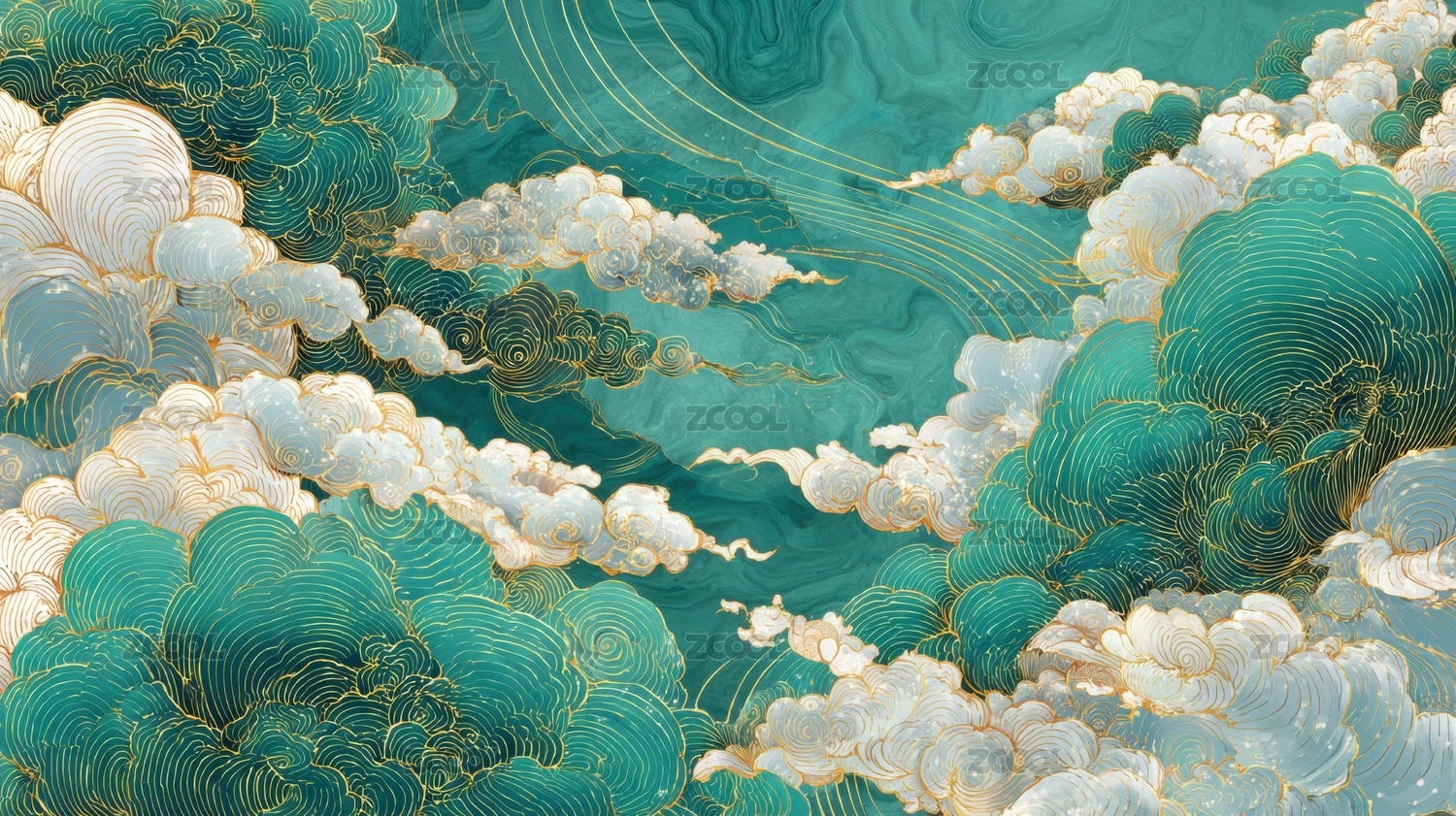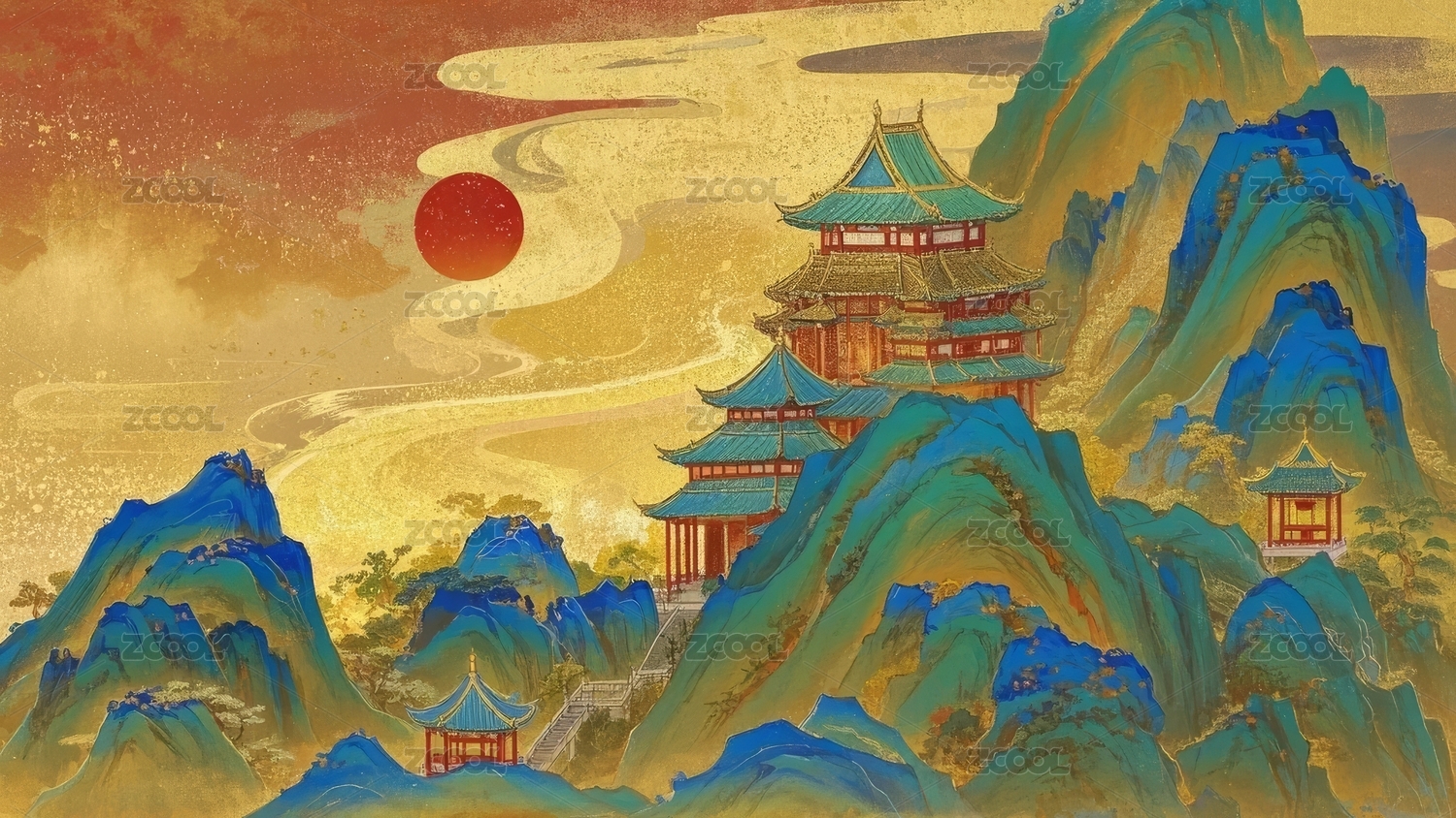 插画,卡通,梦幻,艺术,传统,自然,柔和,色彩,天空,东方