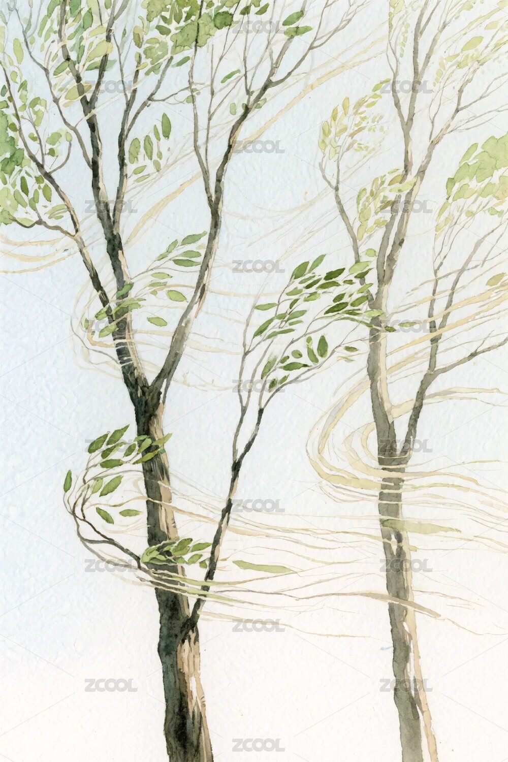 树木水彩插画
