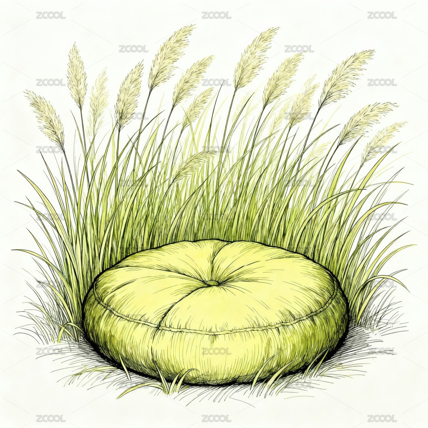 蒲草丛中的圆形坐垫