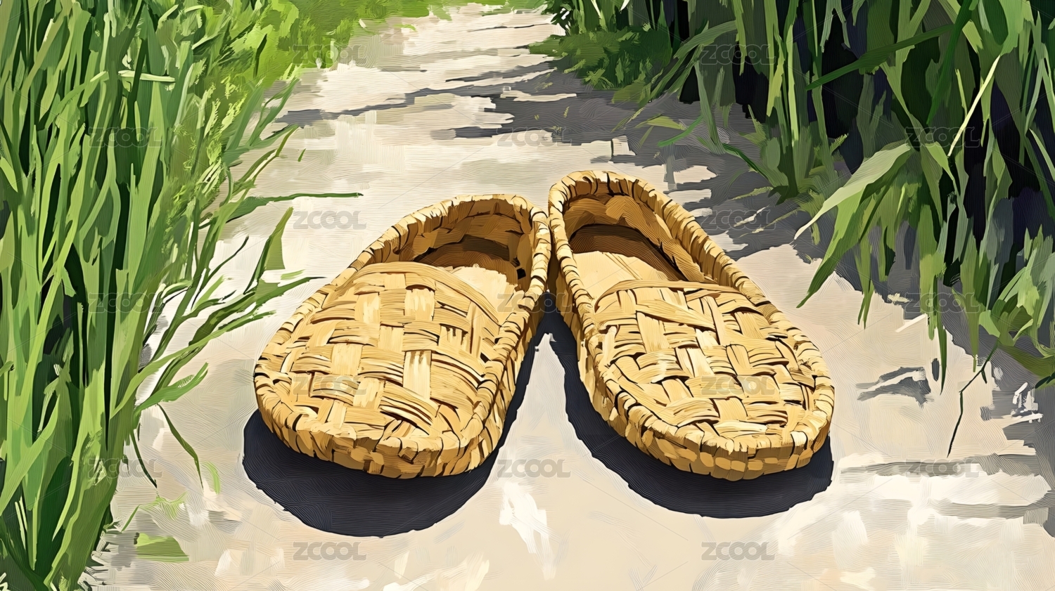 黄色,夏日,手工,编织,纹理,草编,拖鞋,鞋底,草鞋,凉鞋