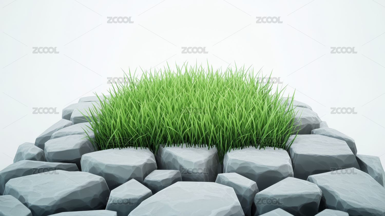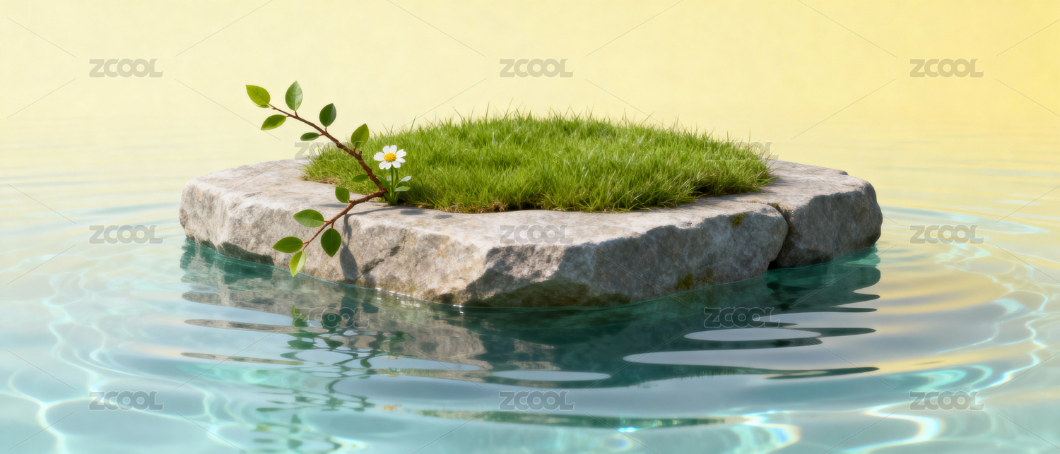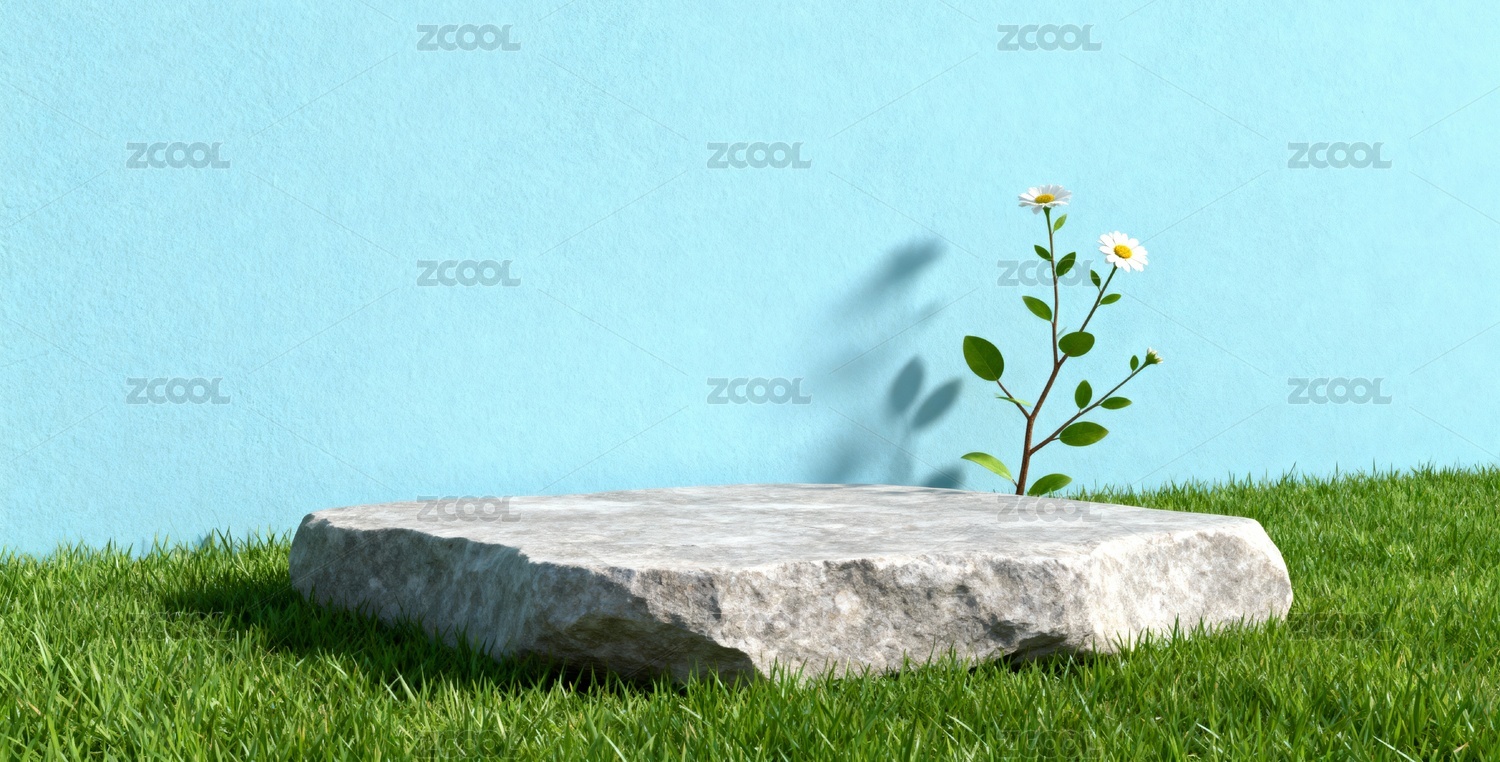 3D绿色草植物石头清新森系产品展台背景