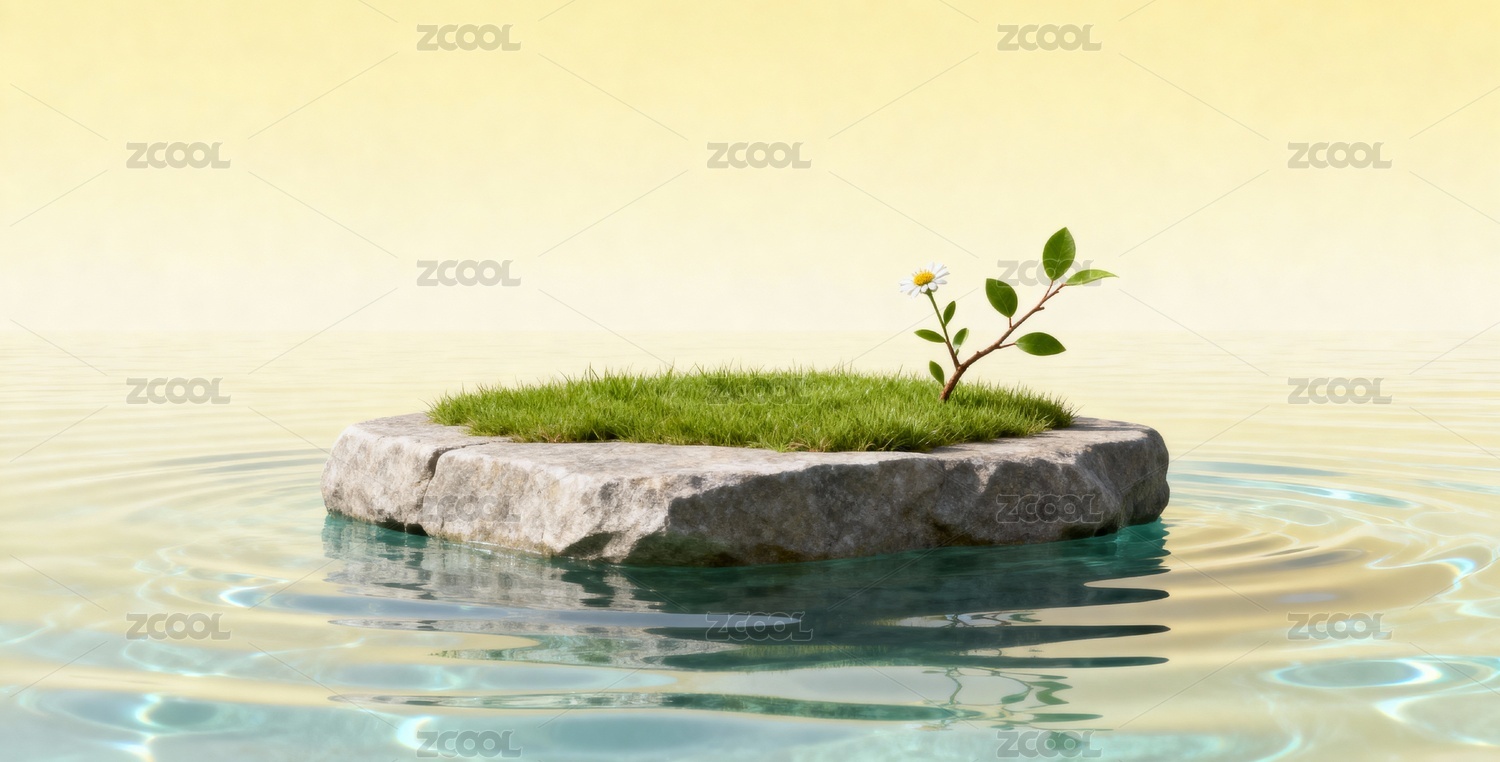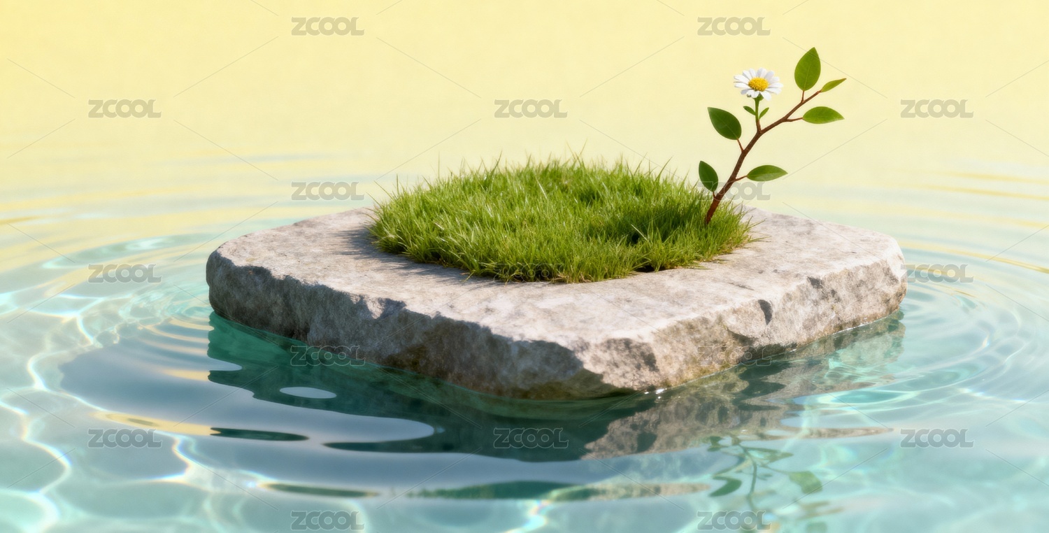 极简石台与自然背景