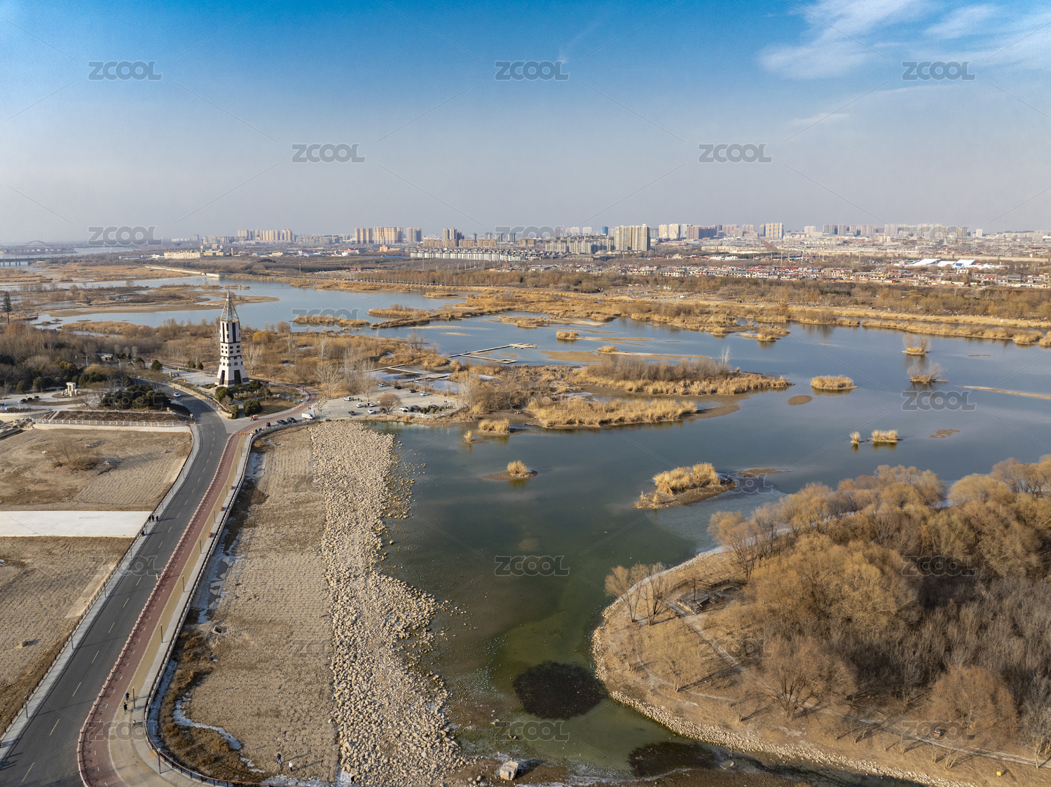 河北省石家庄市滹沱河生态旅游区航拍图片