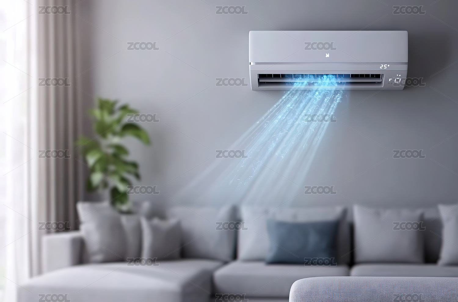 现代客厅中的空调冷风概念