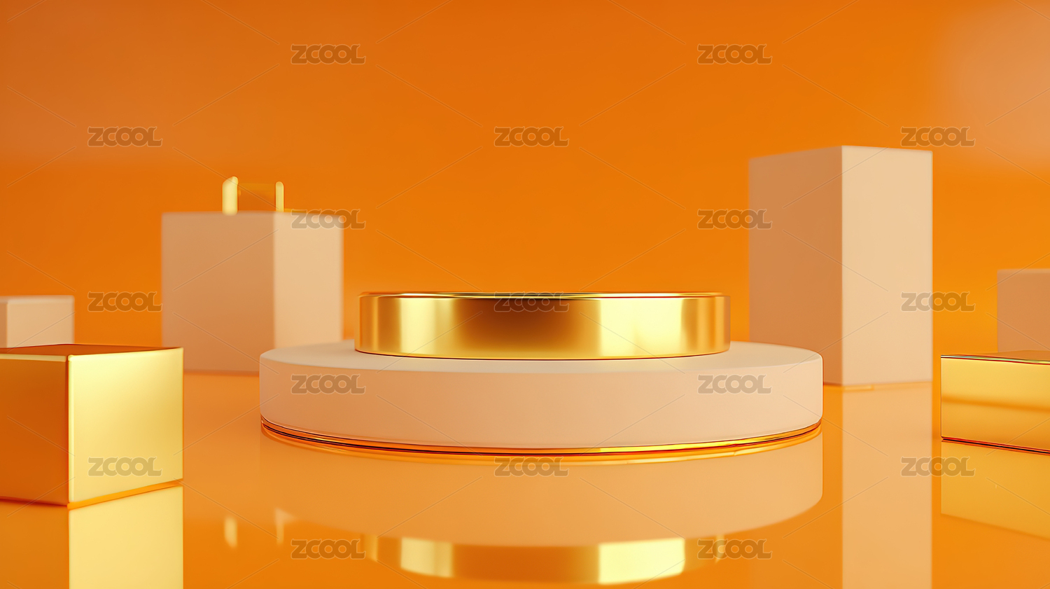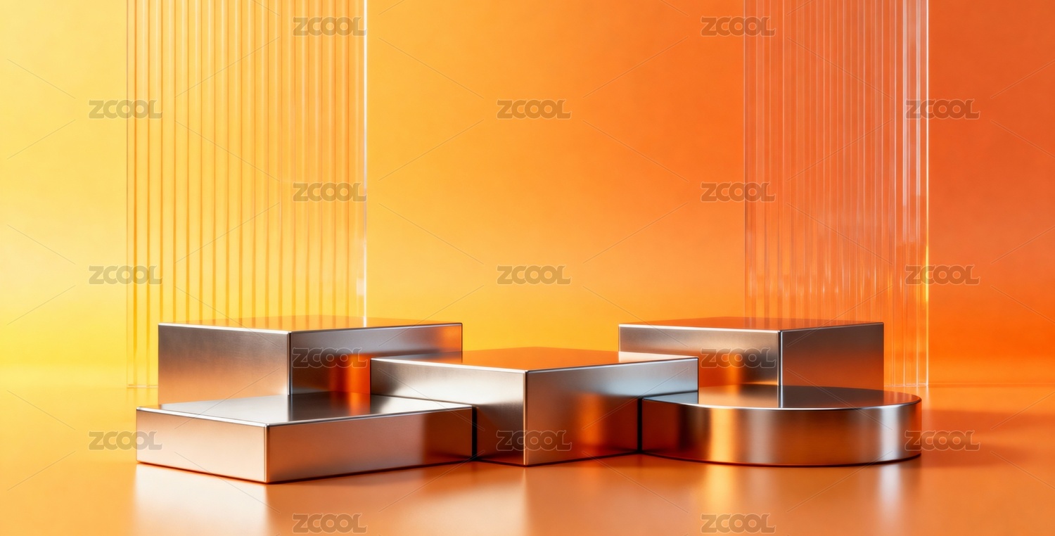 方块,几何,静物,场景,金属,玻璃,橙色,背景,台阶,平台