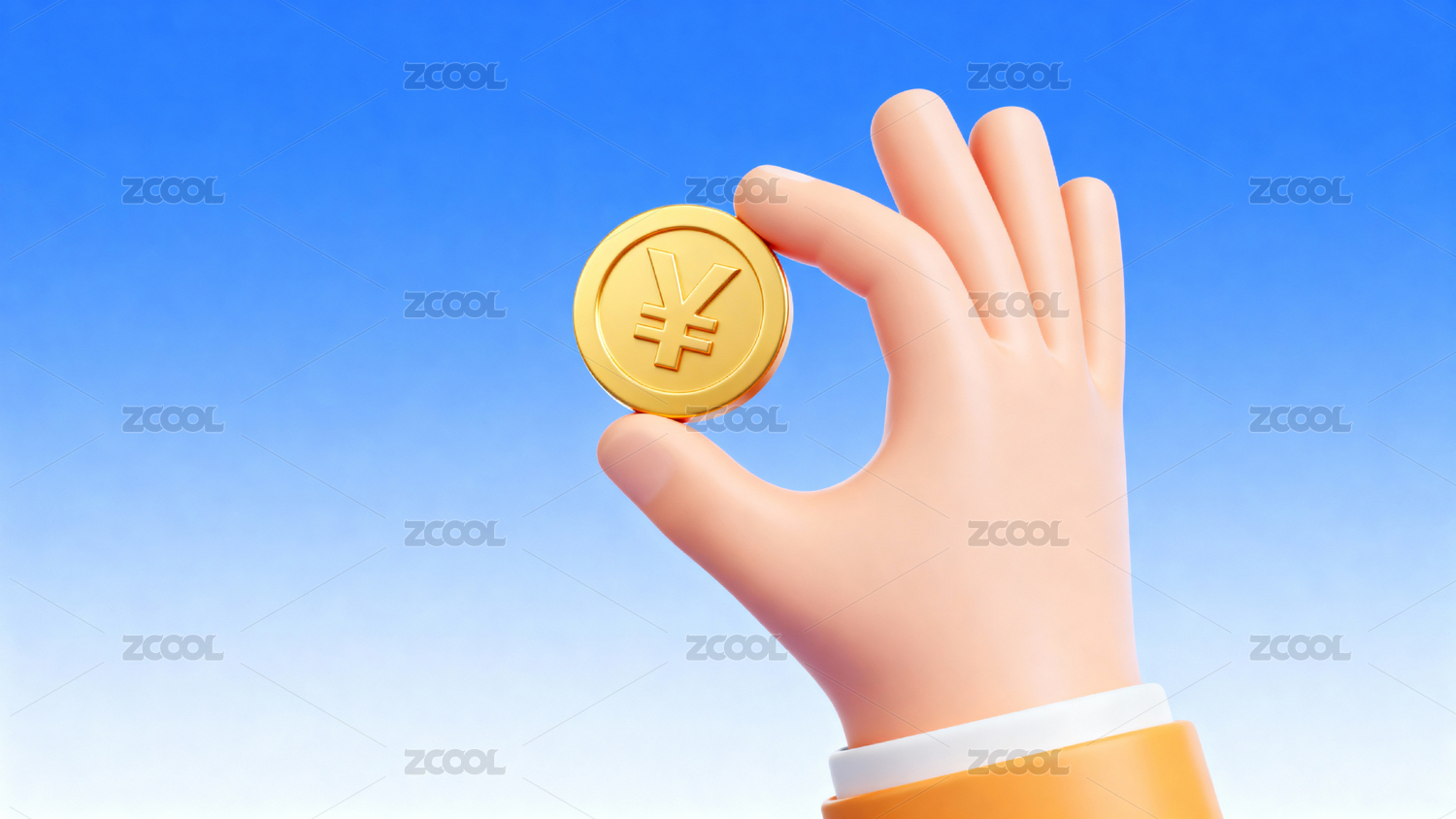 手持金币人民币符号
