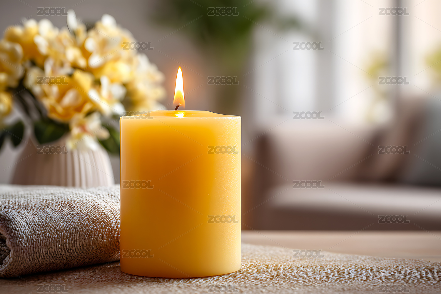香薰蜡烛与褶皱亚麻布