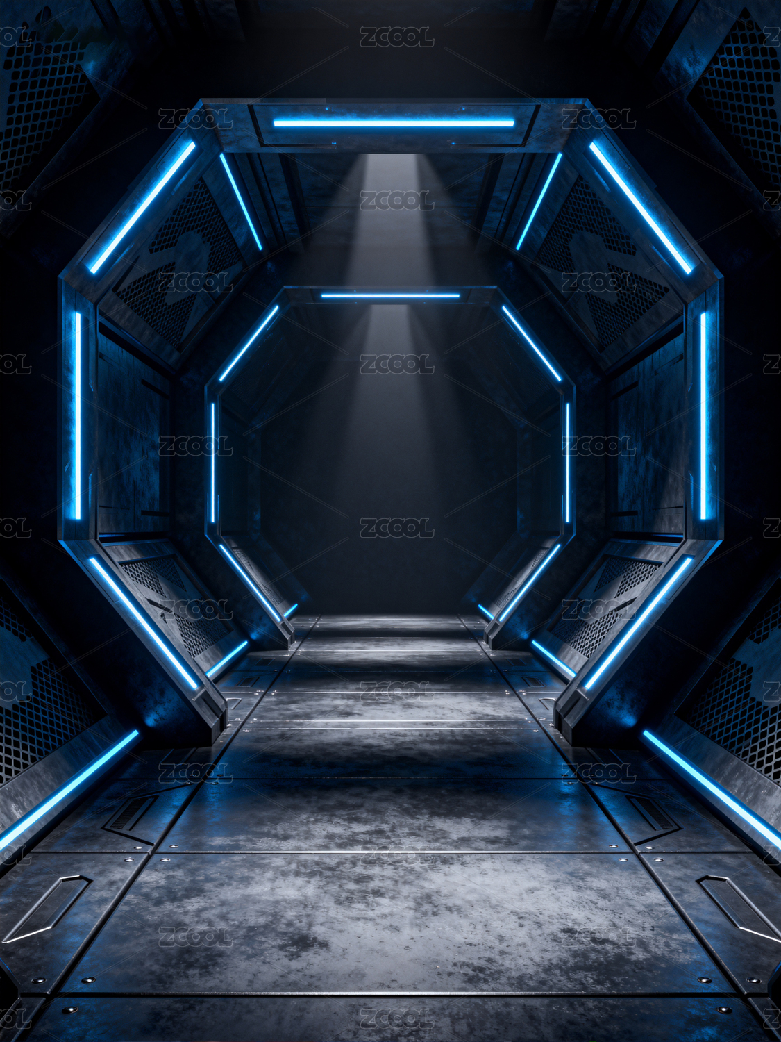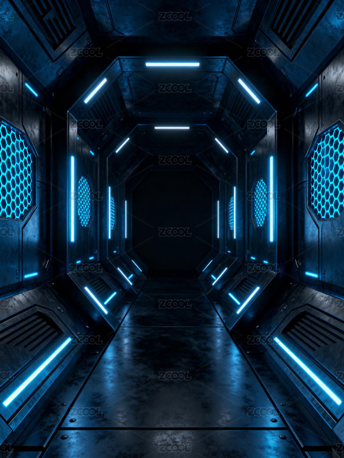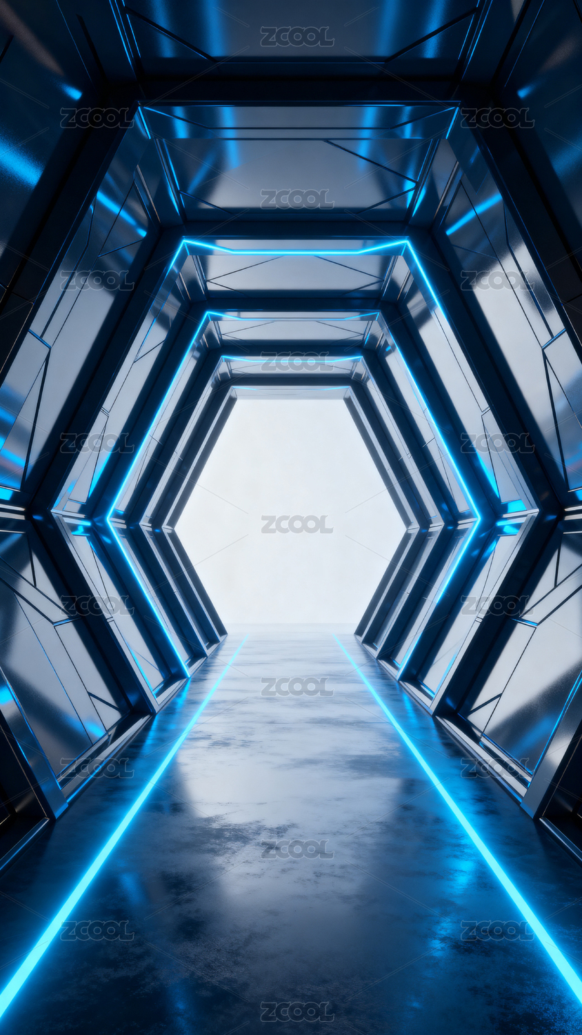蓝色,发光,几何,设计,现代,空间,反射,平面,工业,冷色调