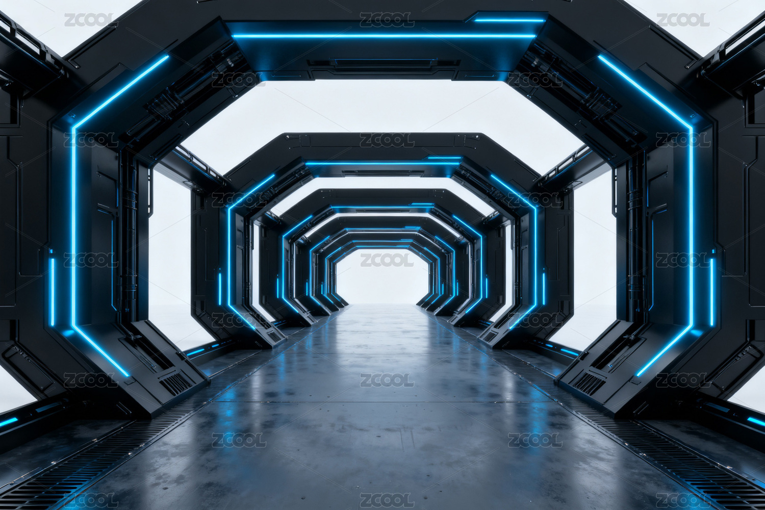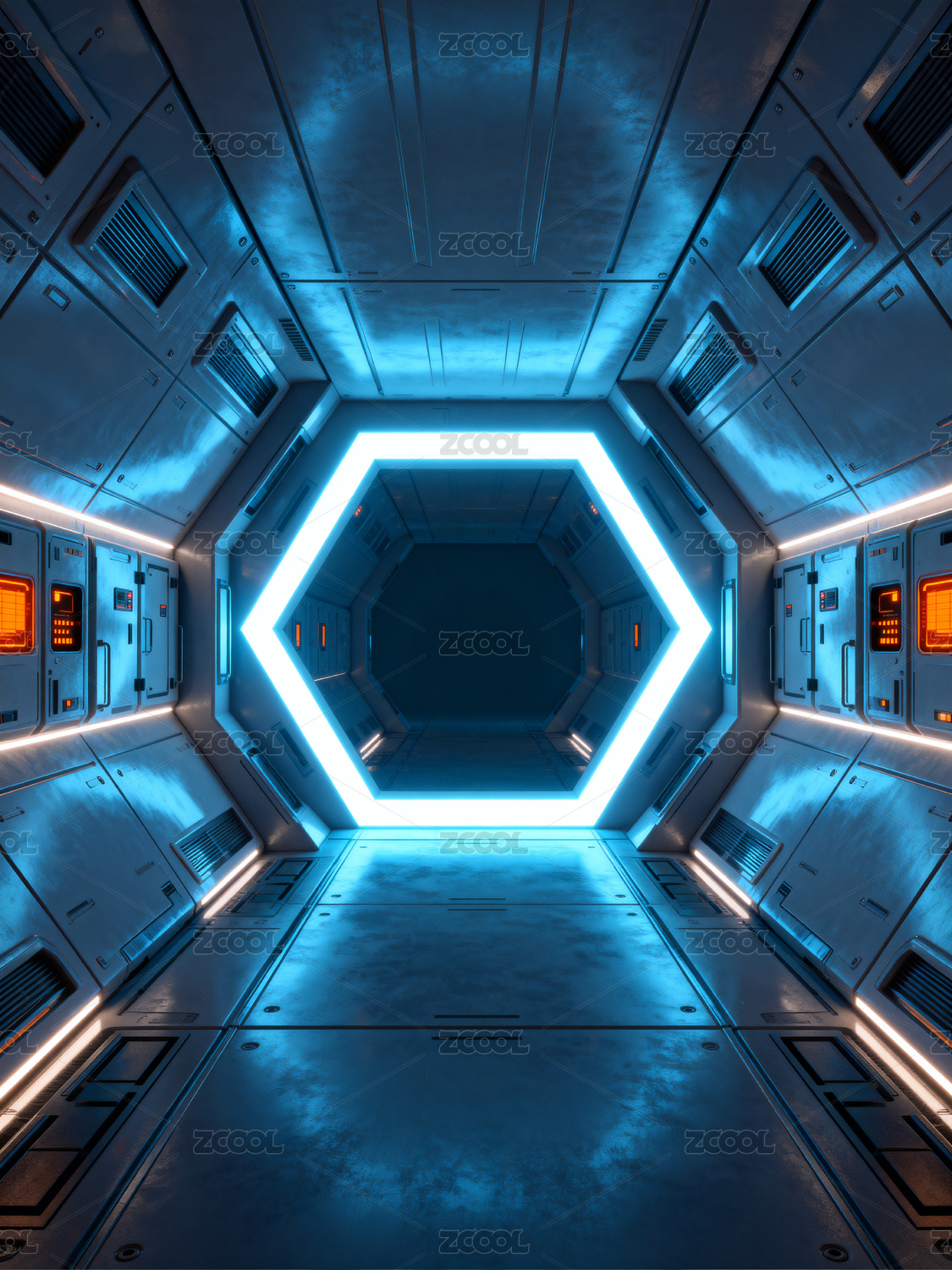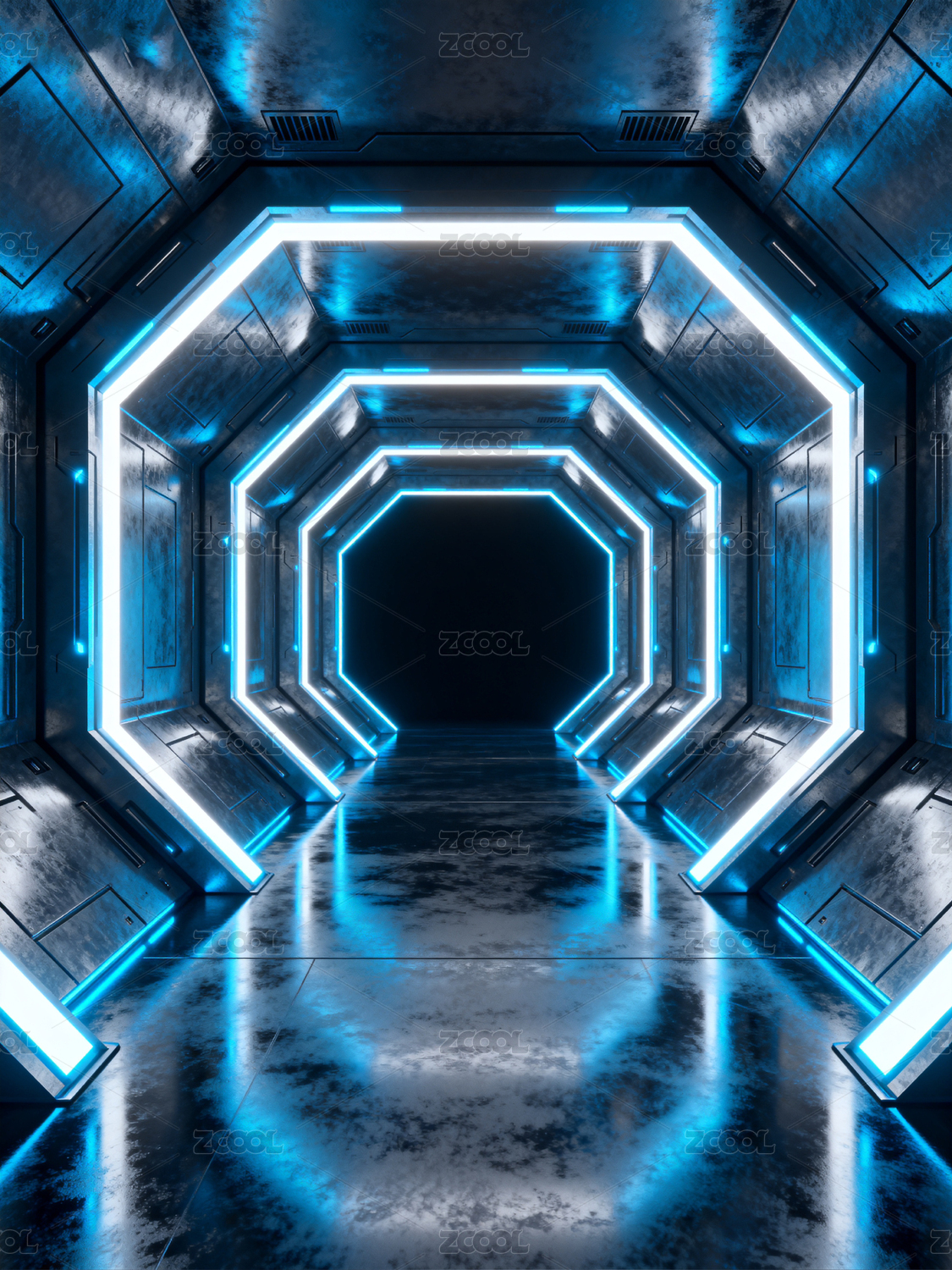 蓝色,发光,几何,设计,现代,空间,反射,平面,工业,冷色调