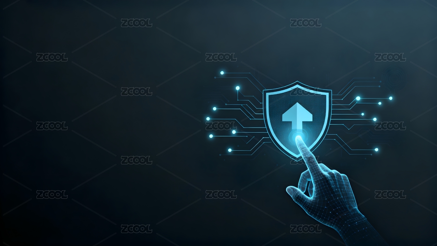 科技盾牌与手指触碰图案