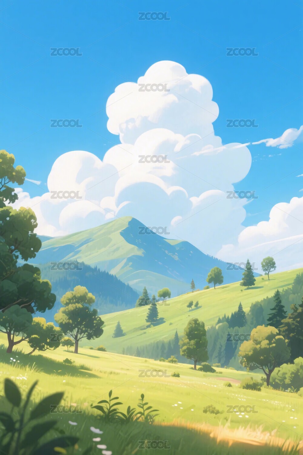 插画,卡通,漫画,风景,树木,自然,清新,美丽,环境,蓝天