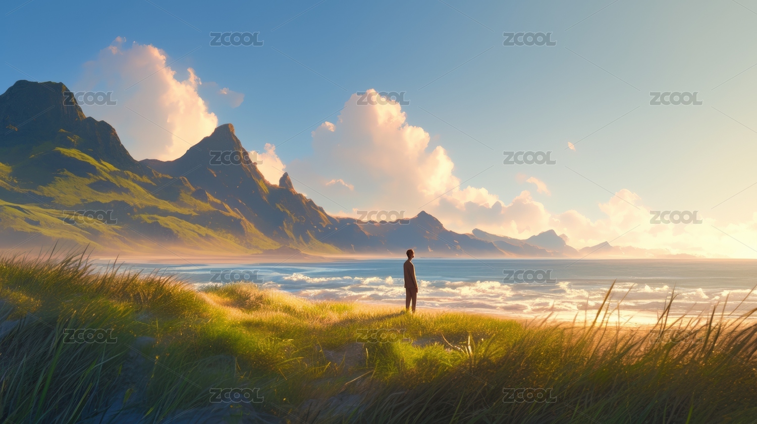 插画,卡通,漫画,风景,阳光,自然,蓝天,白云,户外,草地