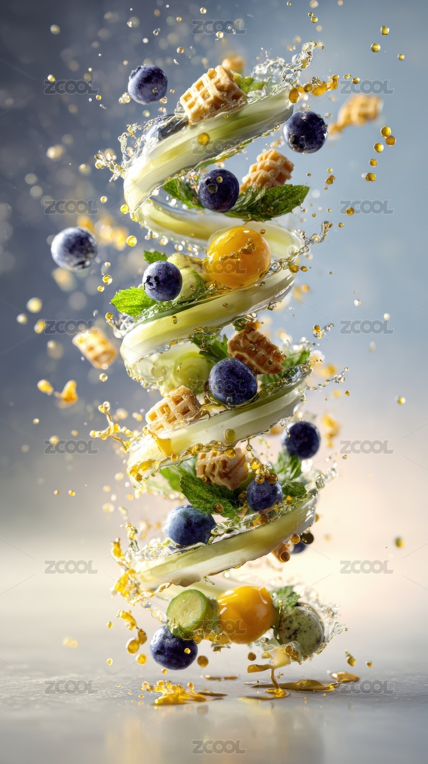 蓝莓与蔬菜的动态螺旋组合