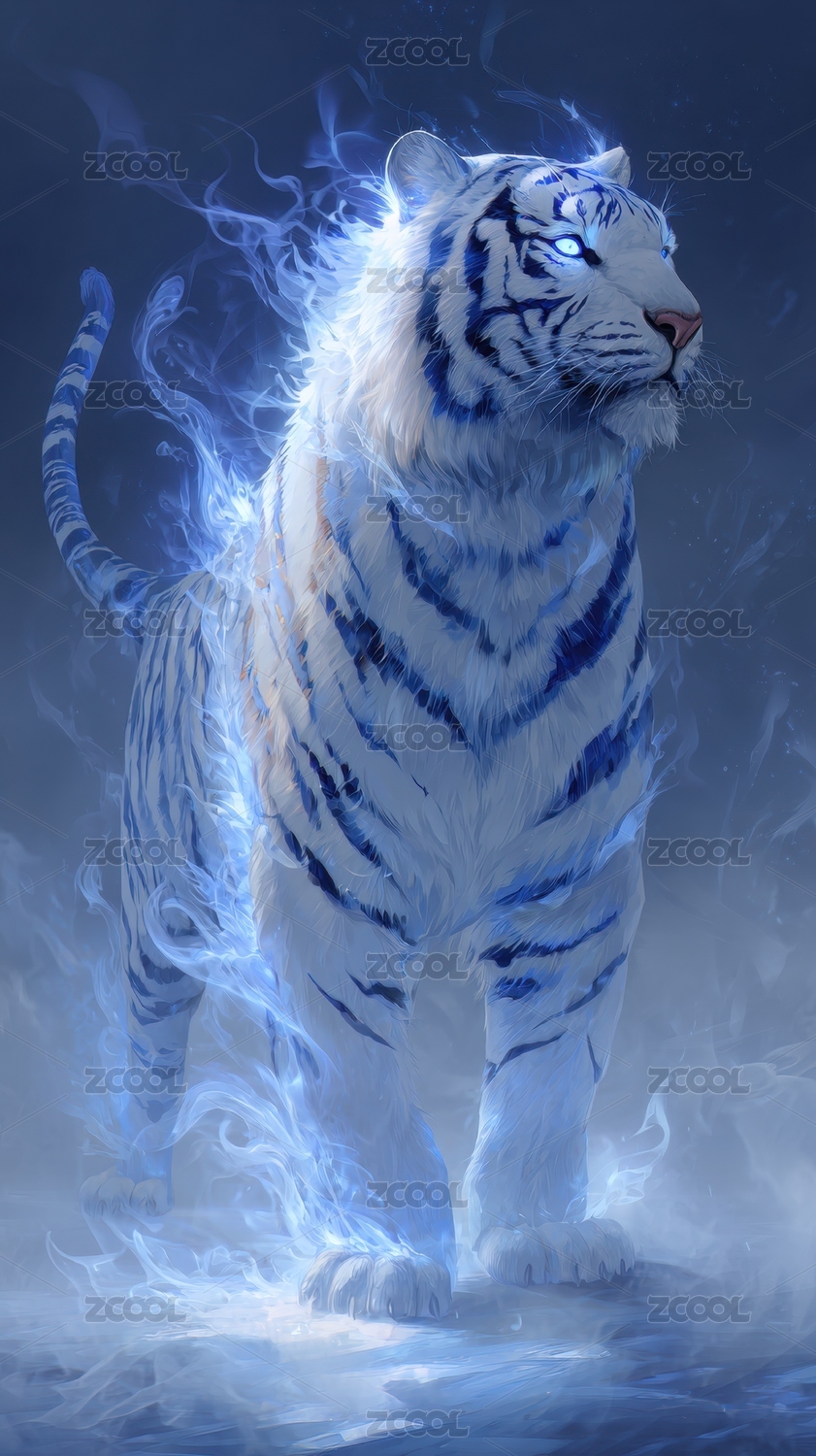 神秘蓝光中的白虎