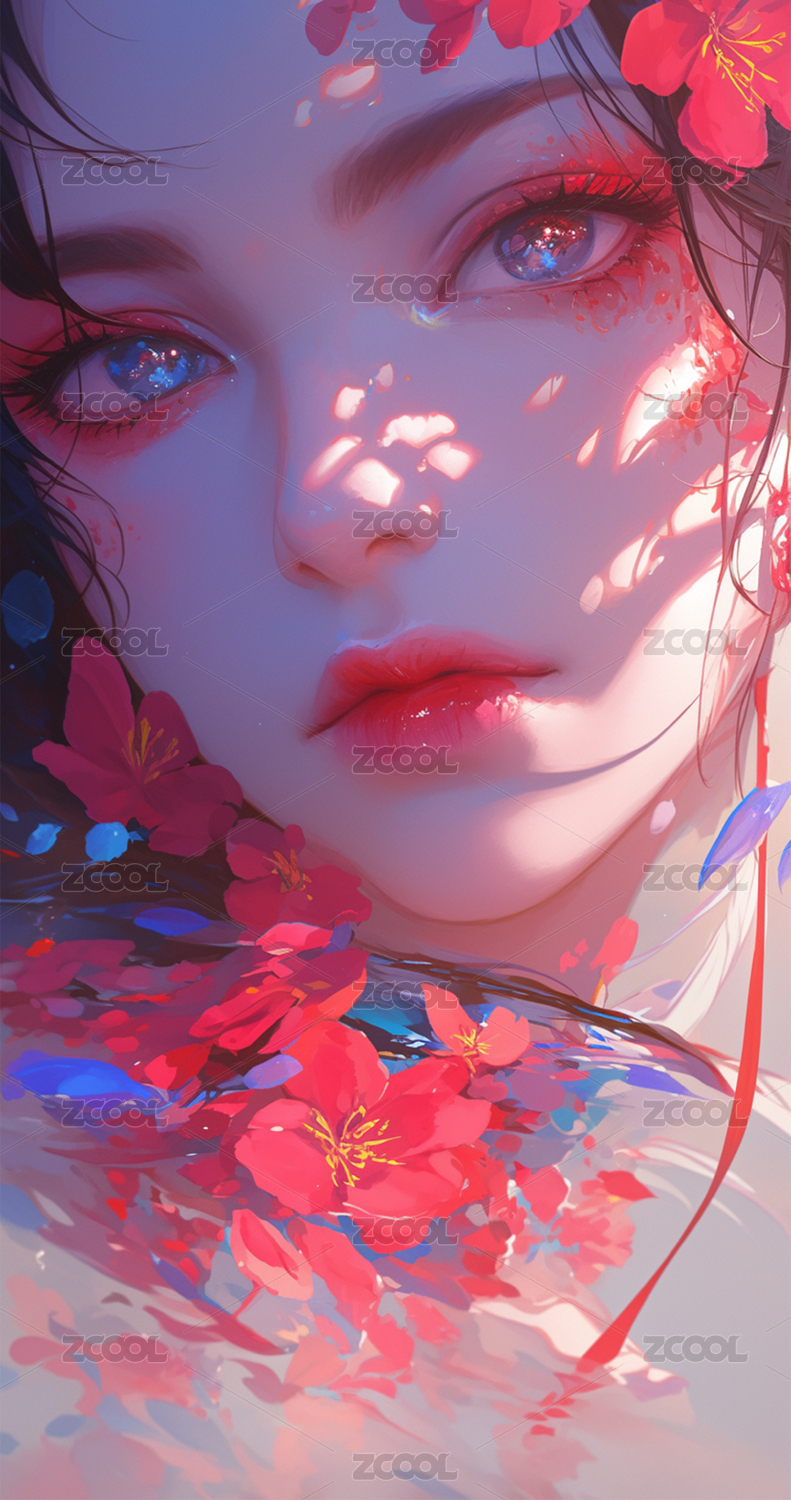 自然,背景,细节,美丽,色彩,蓝色,卡通,插画,红色,光影