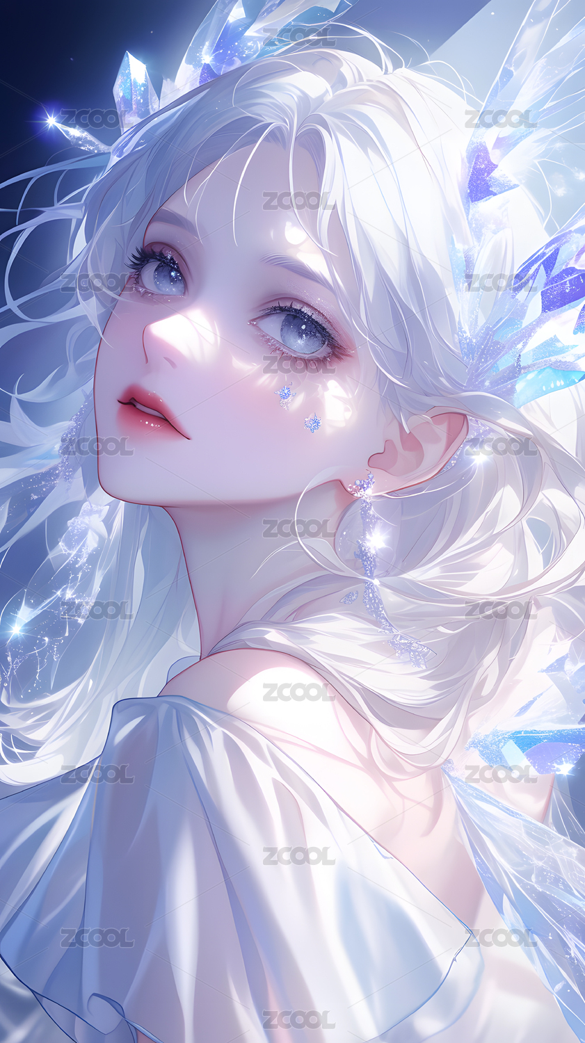 梦幻少女轻抚脸颊银发红眼闪耀光芒
