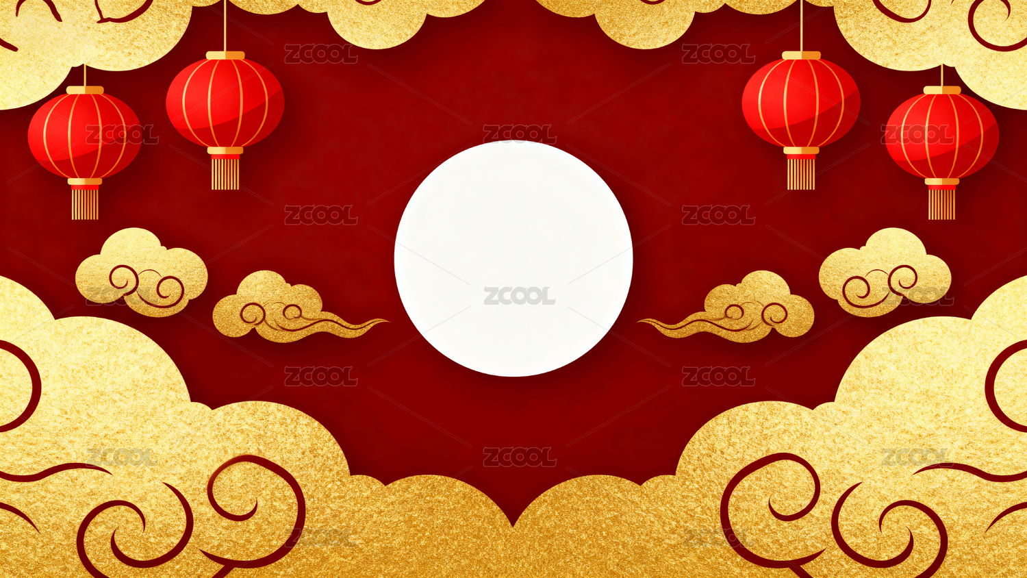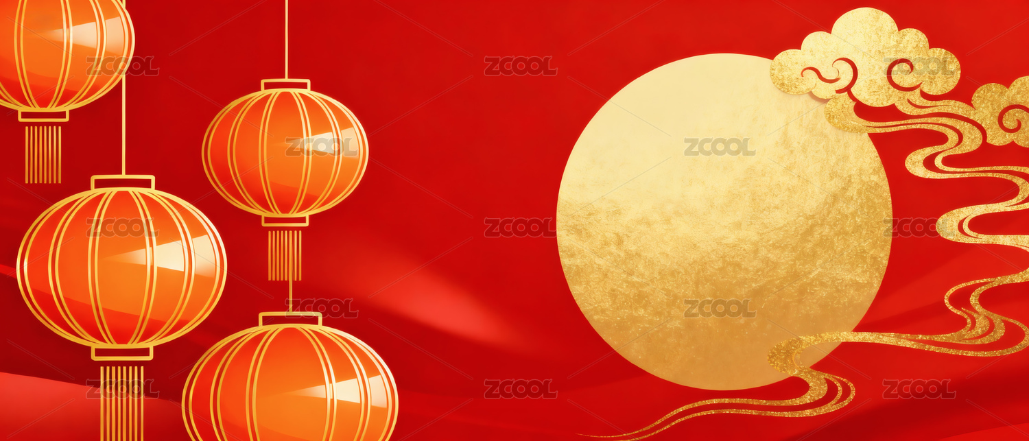 红色灯笼与金色祥云装饰图案