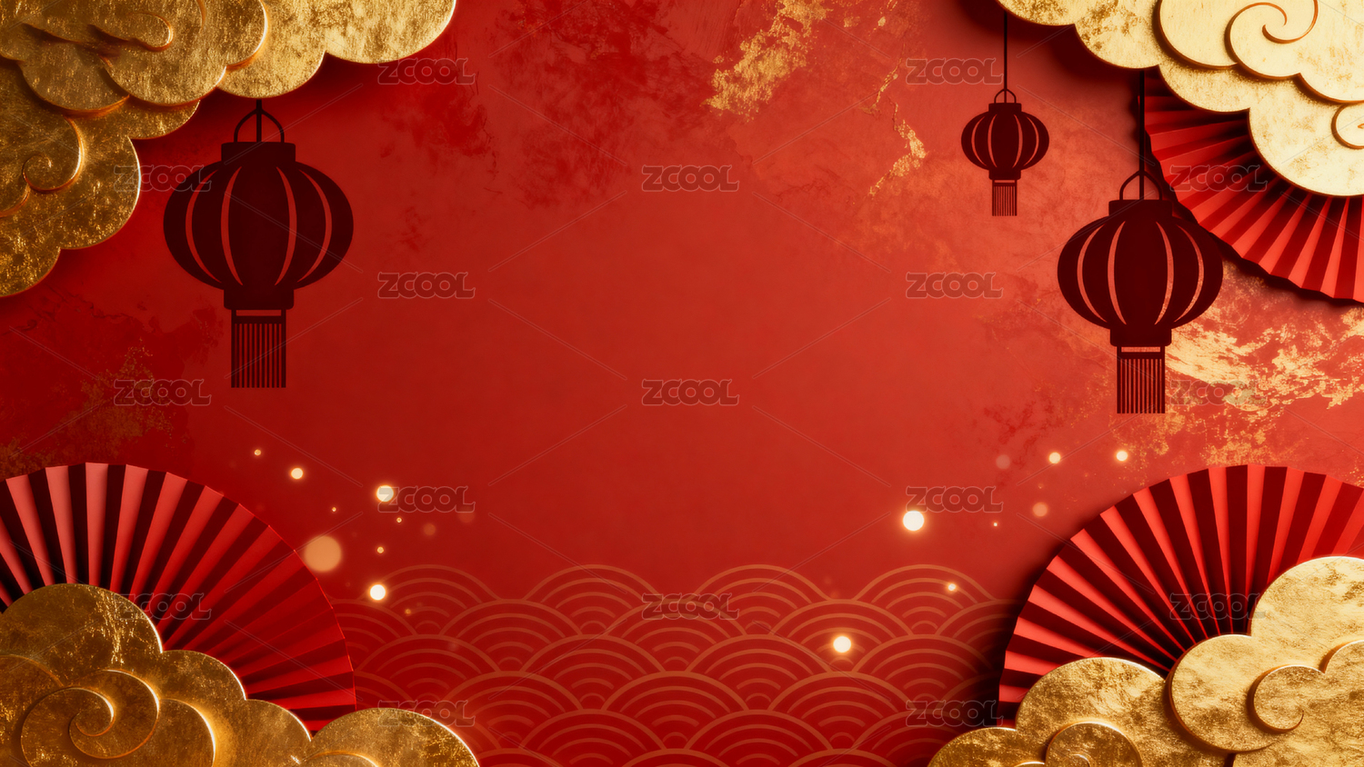 红色背景金色云纹节日装饰