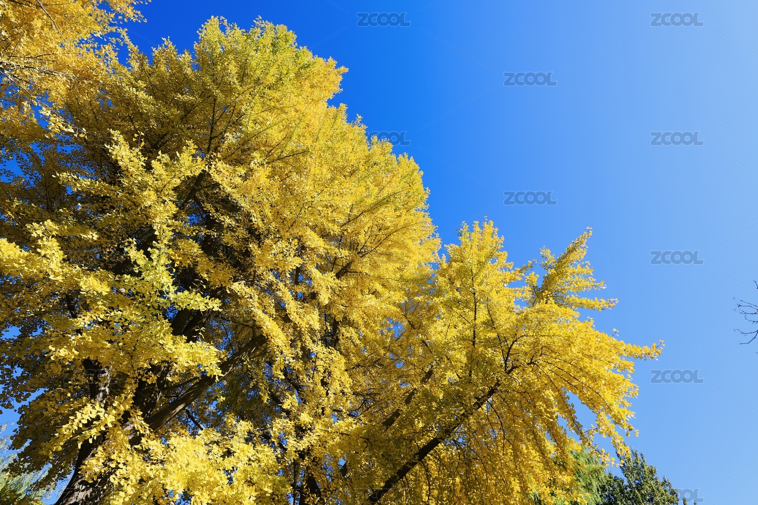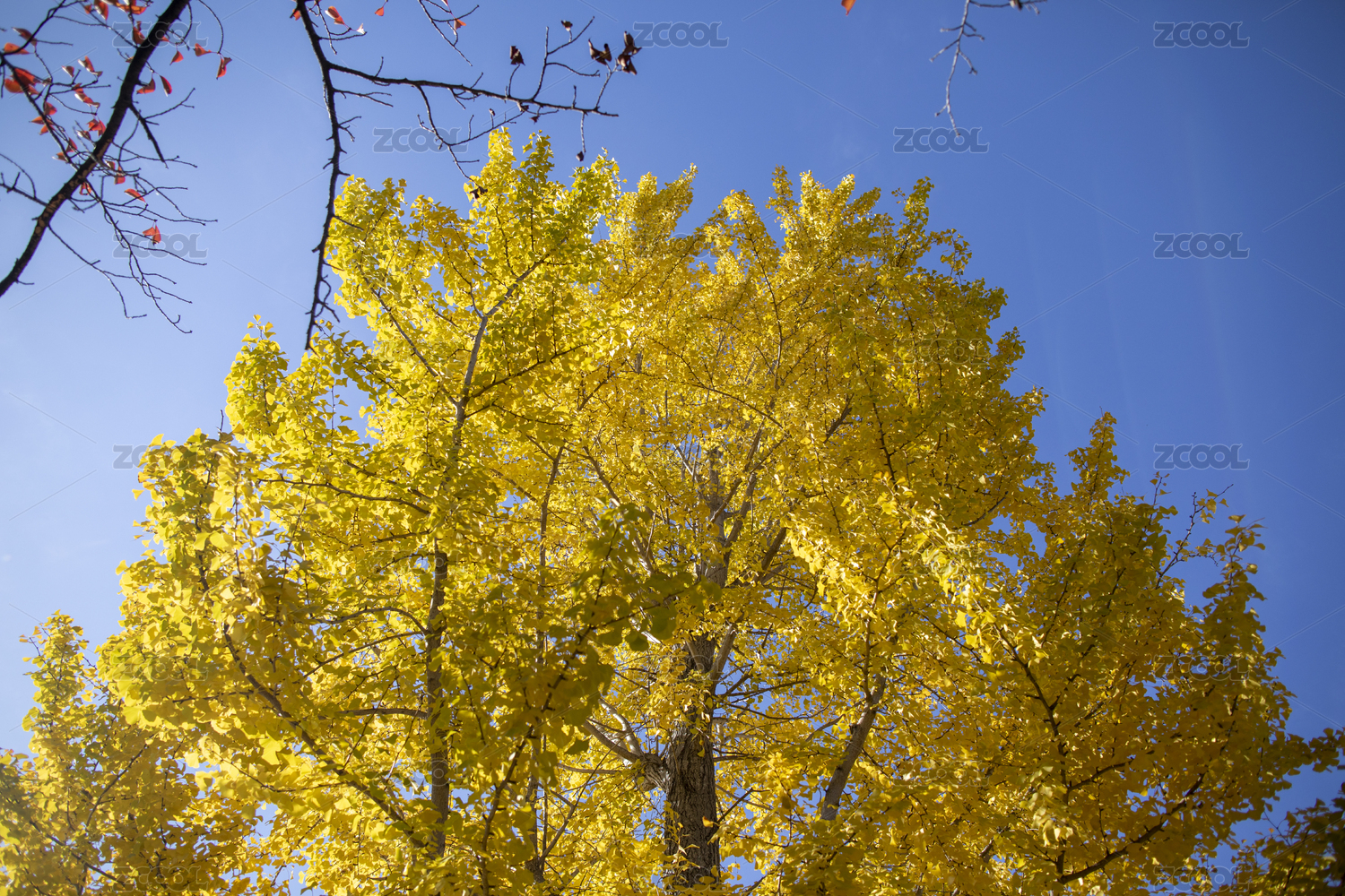 蓝天,金黄色,秋色,秋天,深秋,银杏树,仰拍,户外,风景,风光