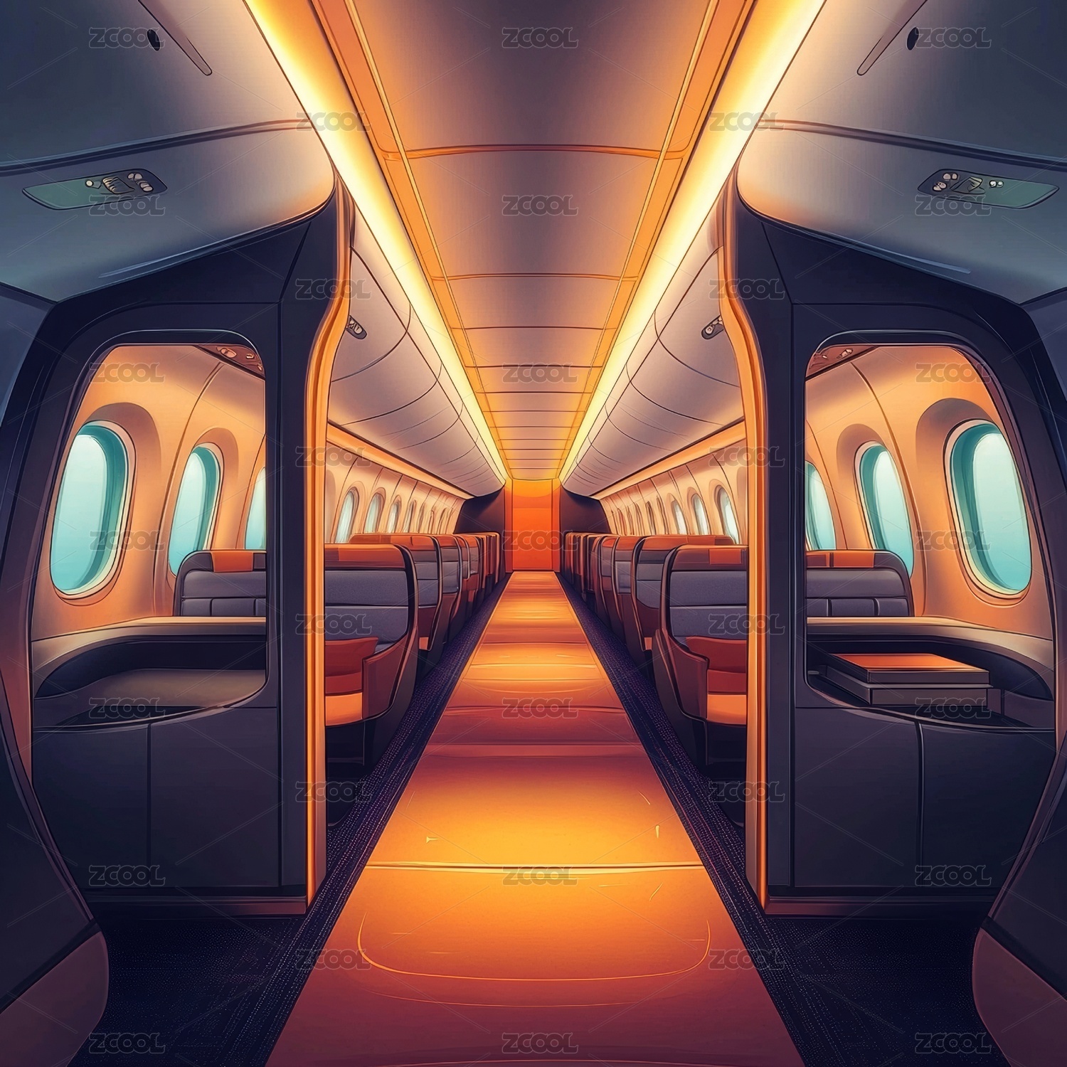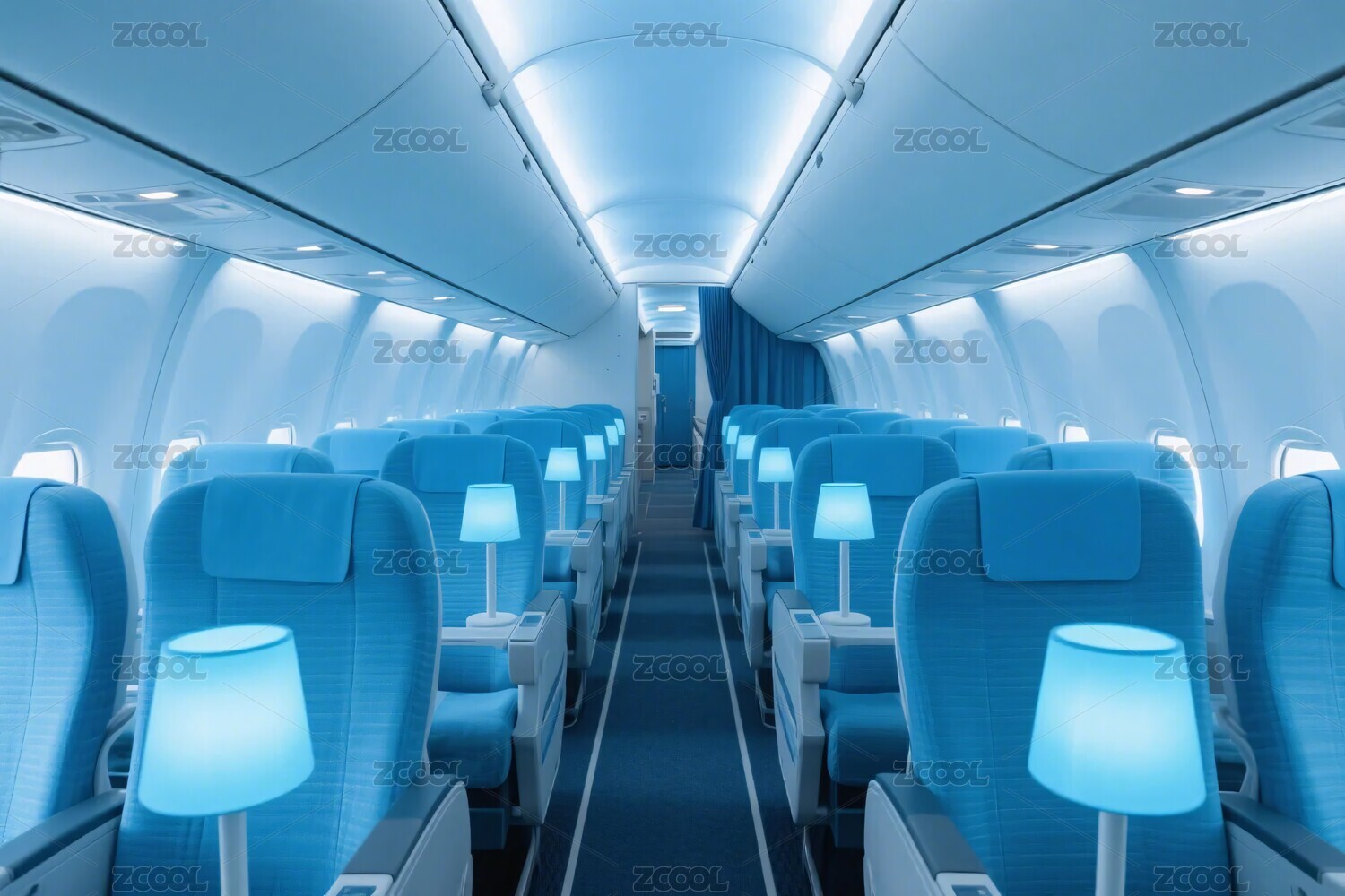 白色,蓝色,现代,设计,通道,飞机,座椅,灯光,天花板,地板