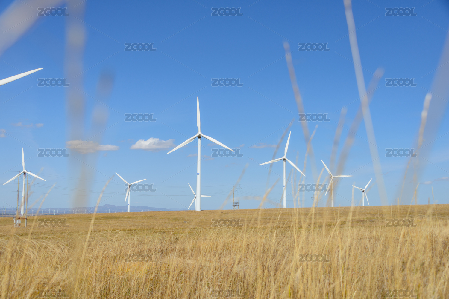 中国内蒙古夏季草原上的风轮机