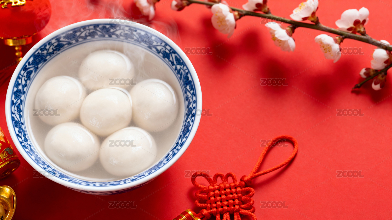 国潮中国风红色喜庆背景上放着一碗汤圆