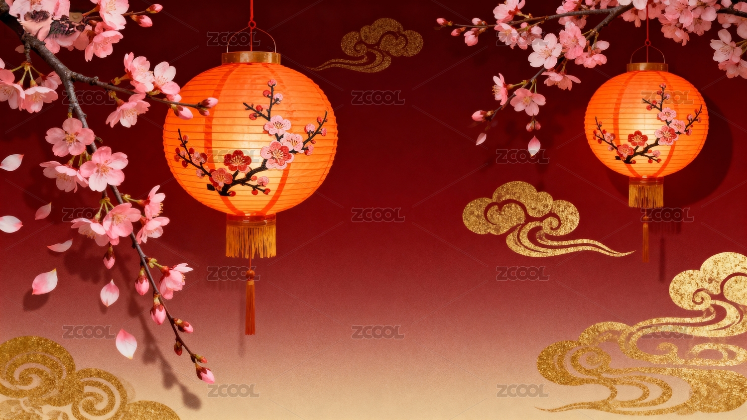 装饰,背景,色彩,纹理,红色,灯笼,传统,喜庆,花朵,金色