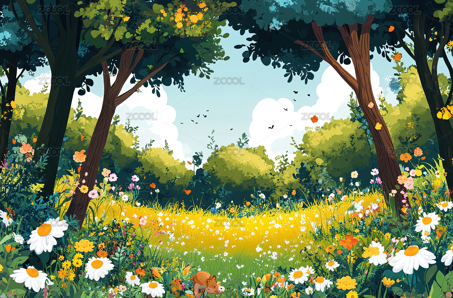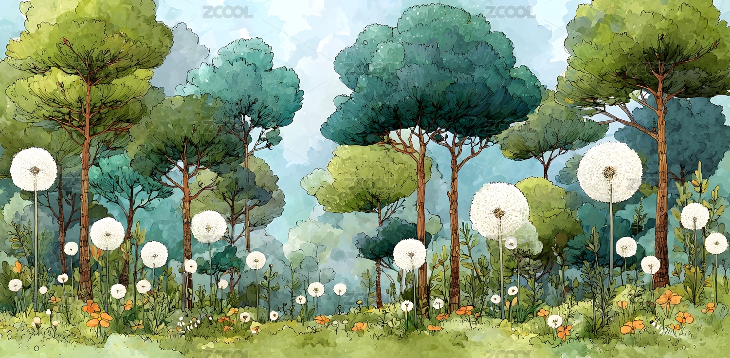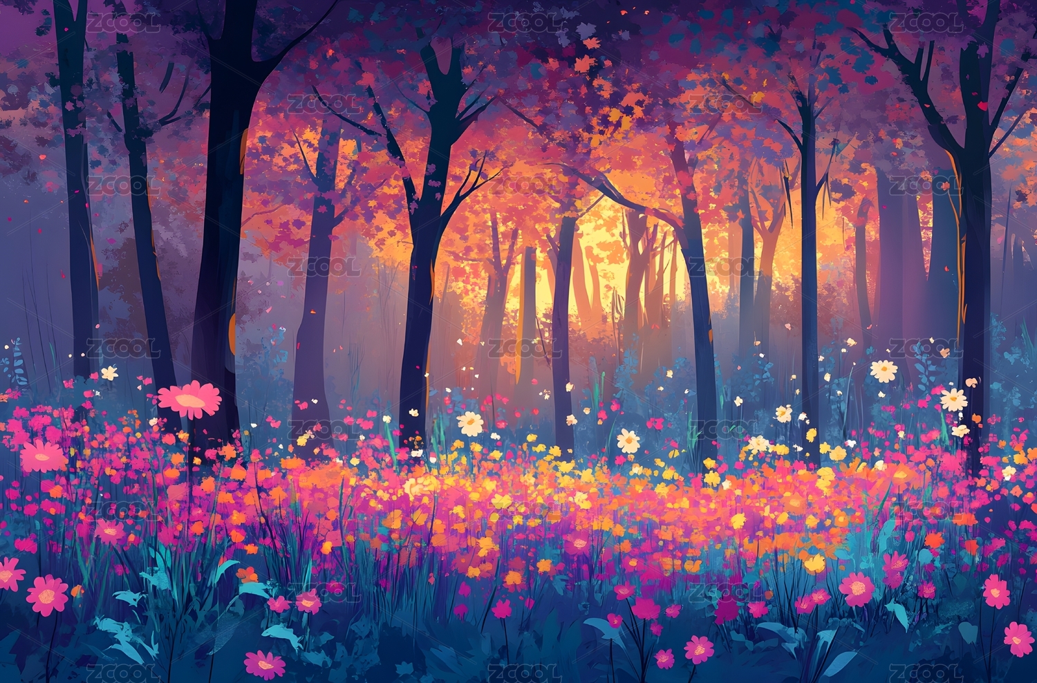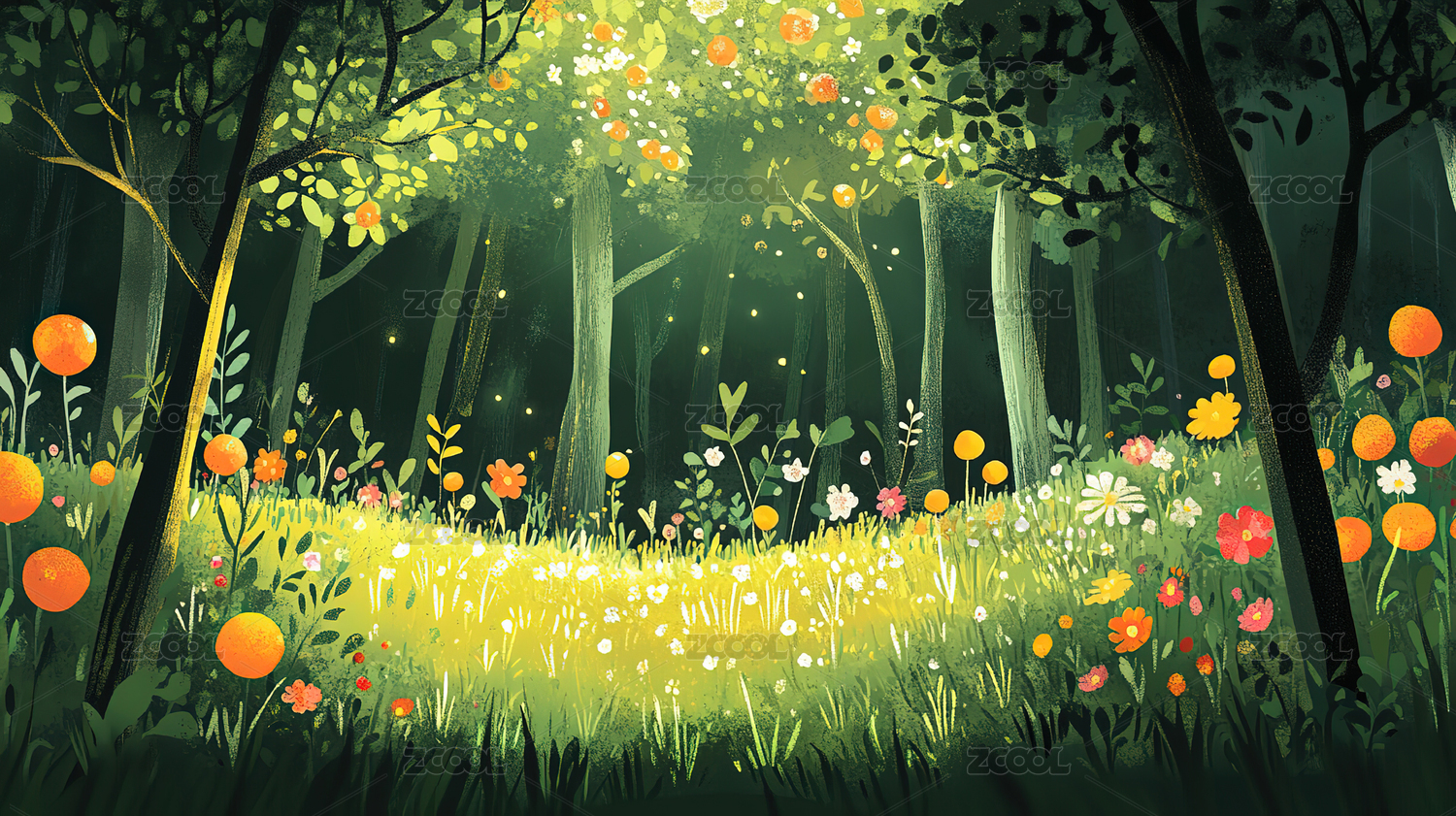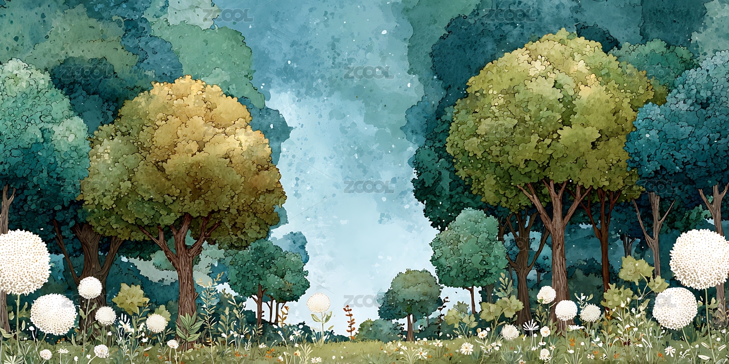 静谧,意境,唯美,森林,梦幻,自然,浪漫,艺术,插画,背景