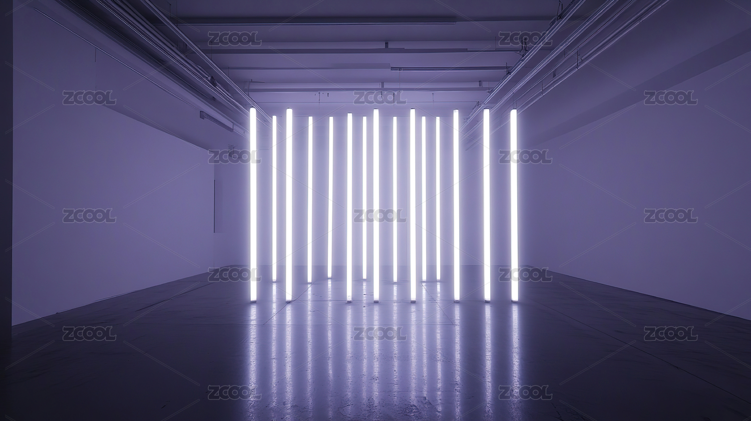 未来感,霓虹灯,蓝色光线,走廊,现代艺术,反射地板,室内设计,空旷空间,光影效果,建筑结构