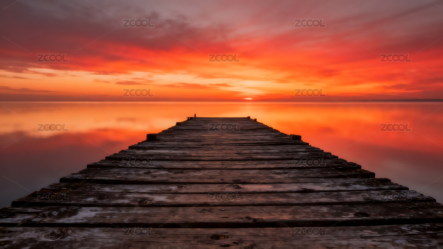 中国山东威海荣成市傍晚时分海边的木制的栈桥