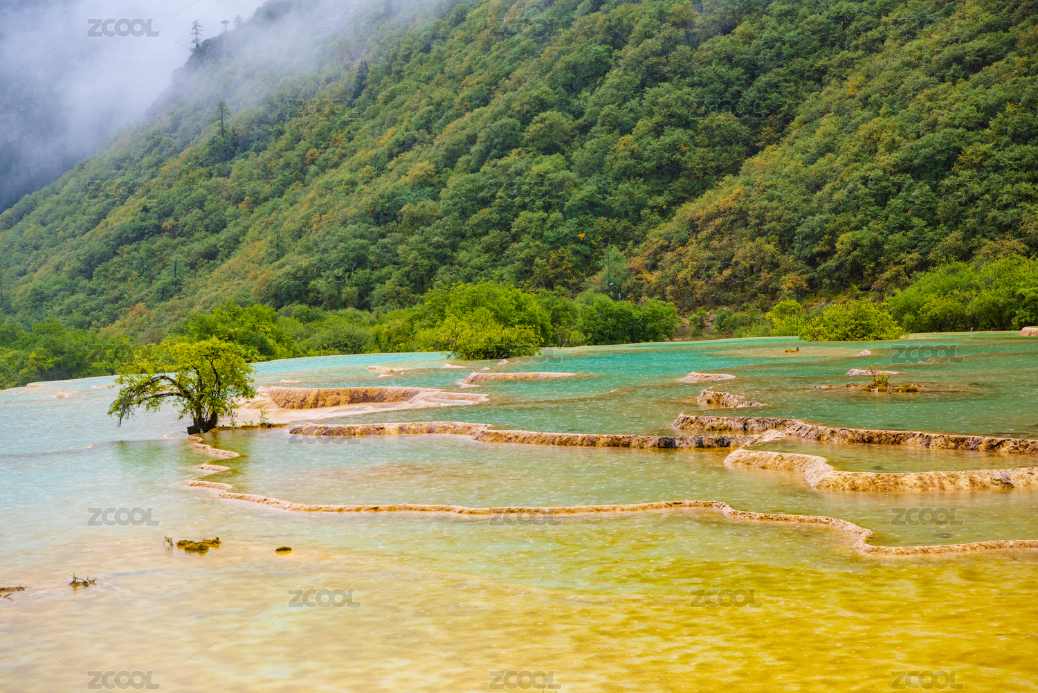 四川黄龙彩池与云杉