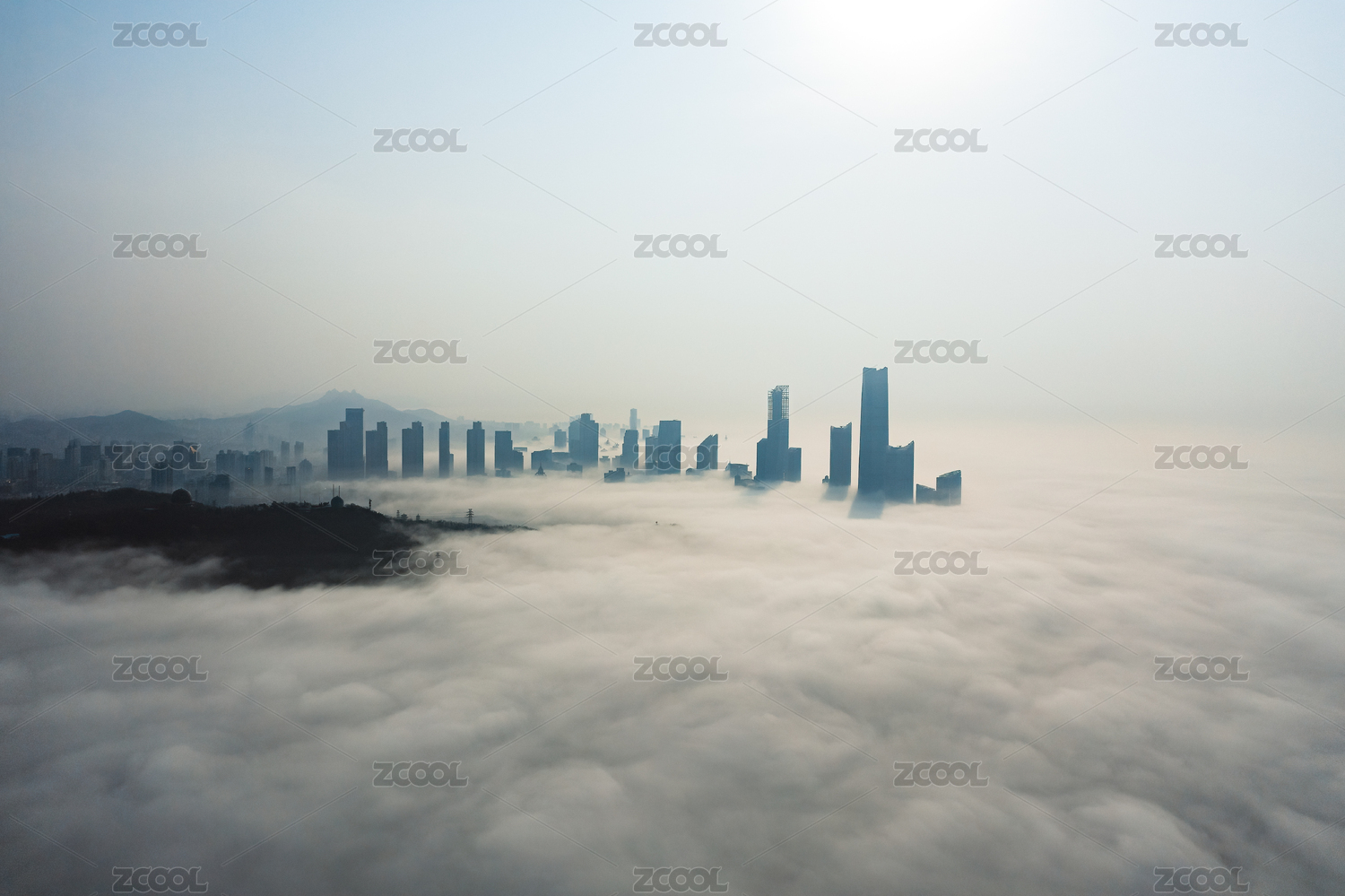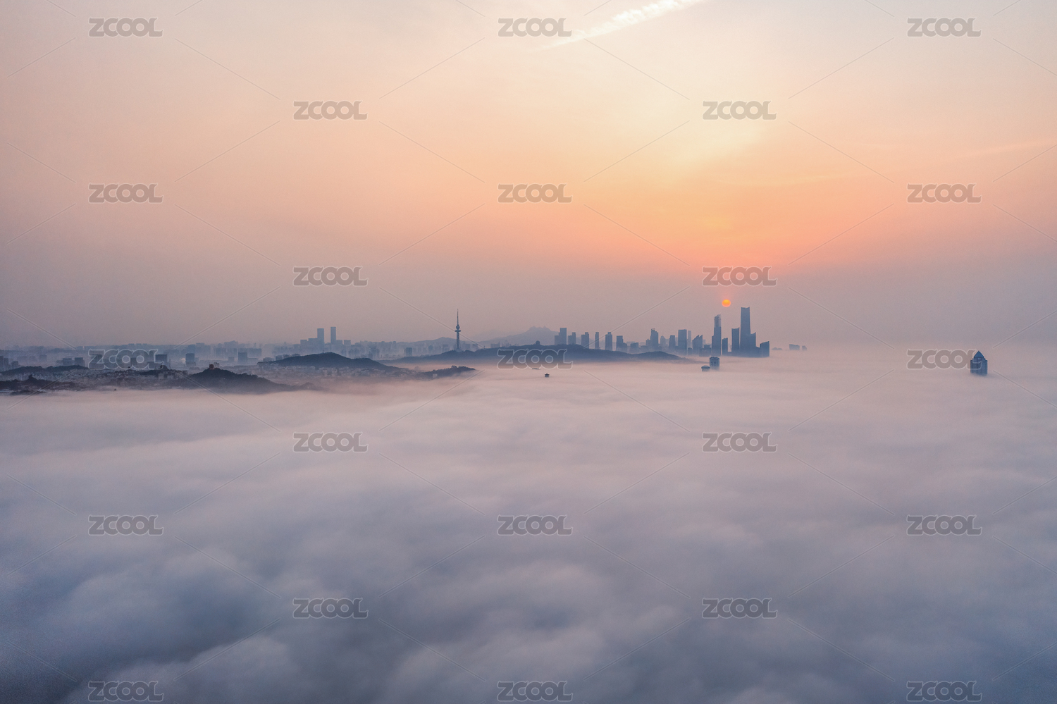 航拍珠海横琴粤澳深度合作区平流雾日出