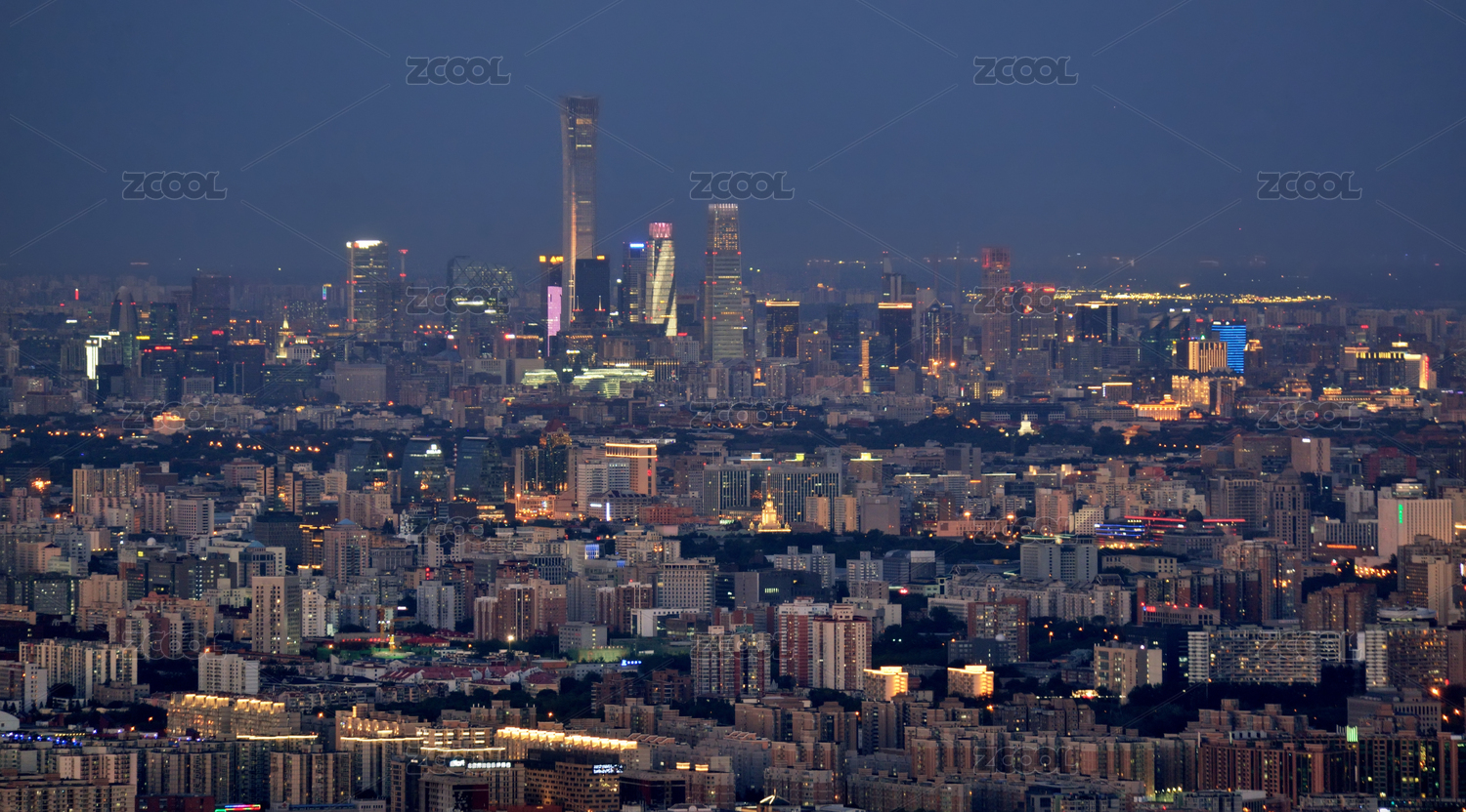 北京,城市,全景,蓝调,夜景,亮灯,傍晚,国贸,CBD,中国尊