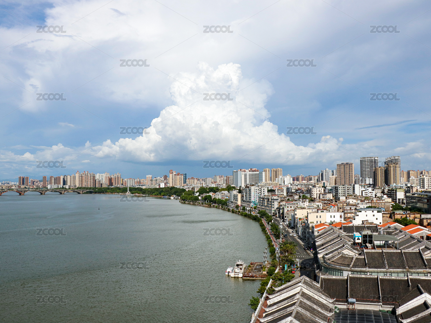 惠州水东街的现代建筑和古建筑的城市风光
