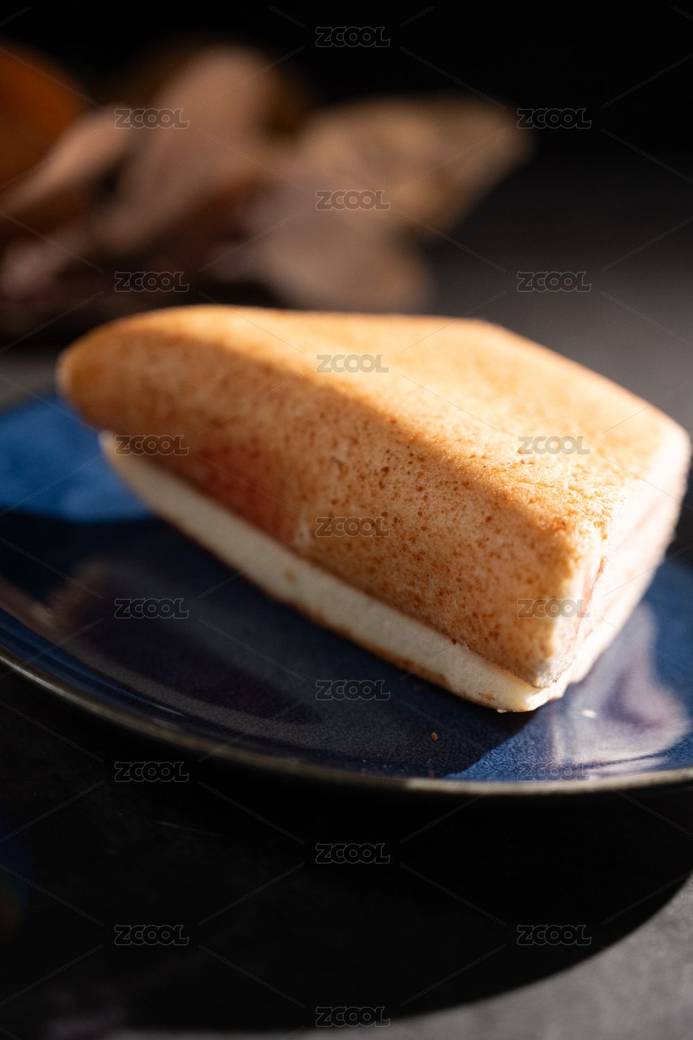 桌面上的盘子里的美味可口的椰蓉蛋糕