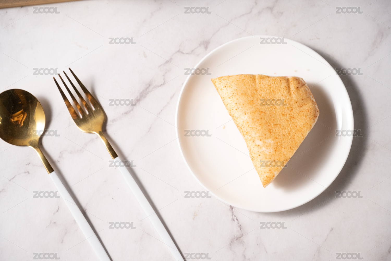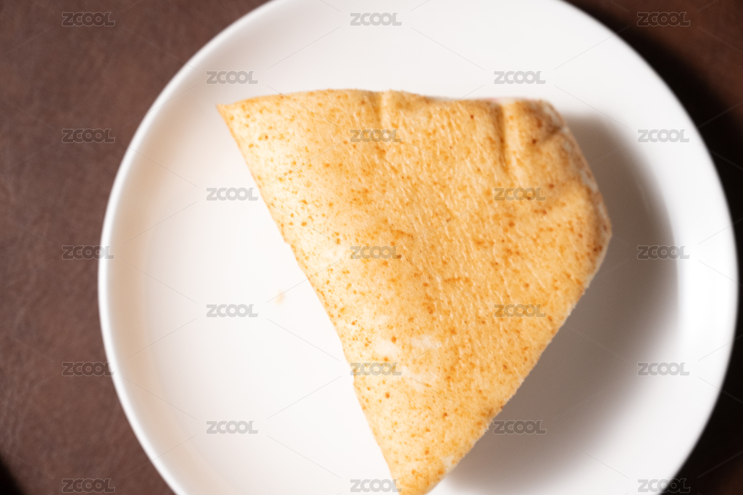 暗色木纹桌面上放着一些卷饼和小菜