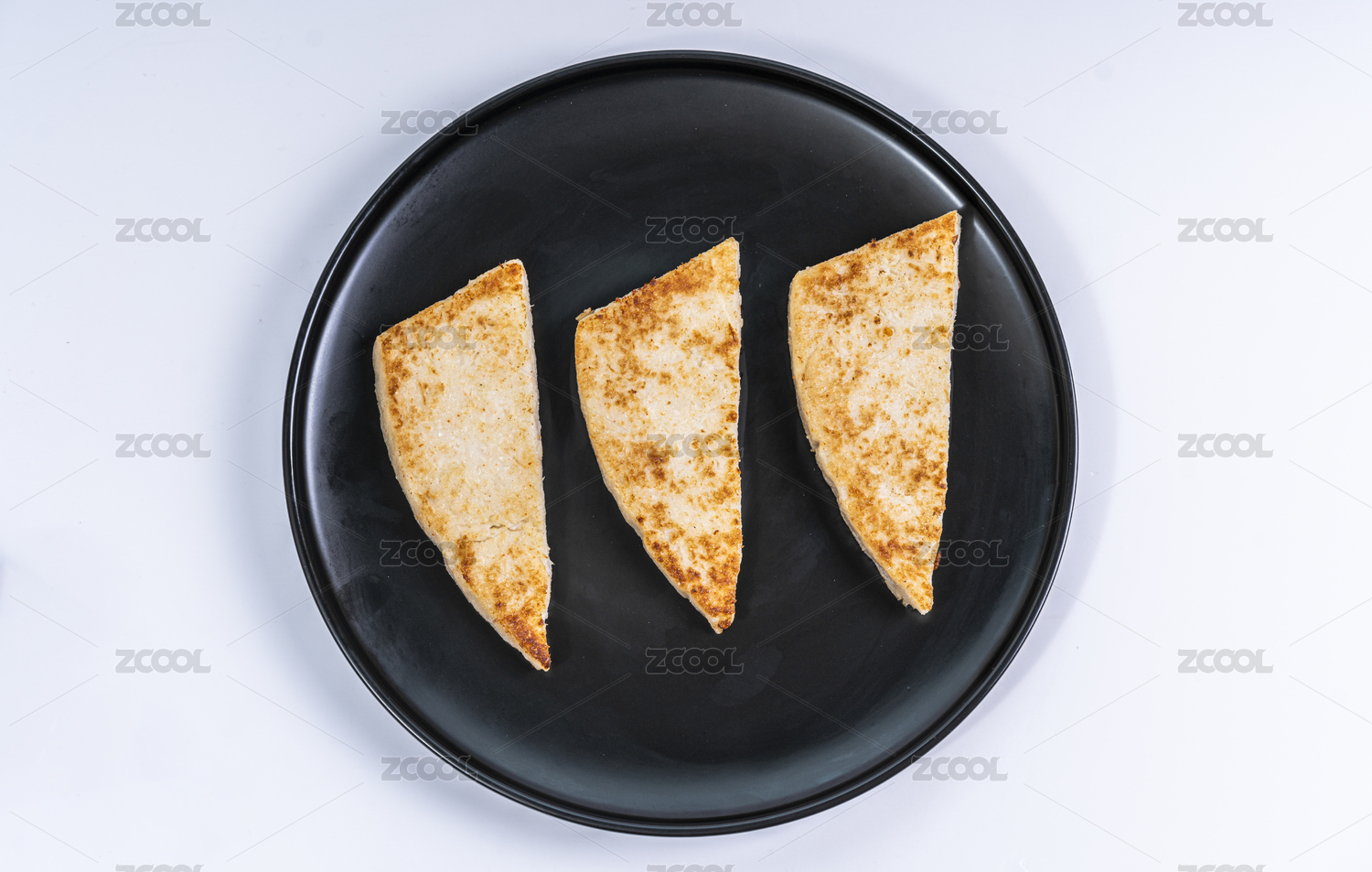 黑色盘子里的三块萝卜糕