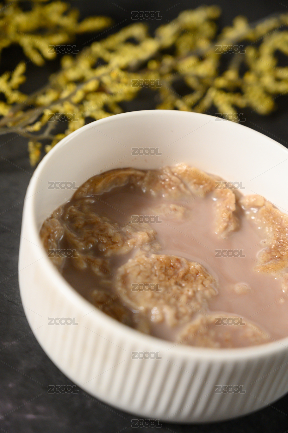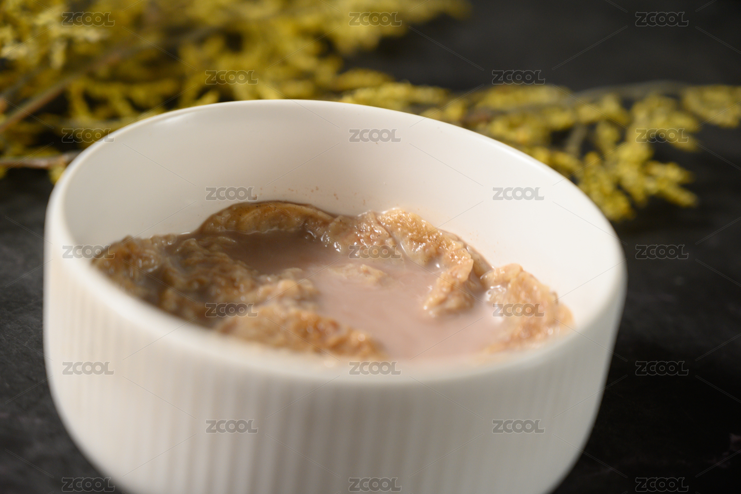 桌面上的碗里美味可口的牛奶荞麦麦片
