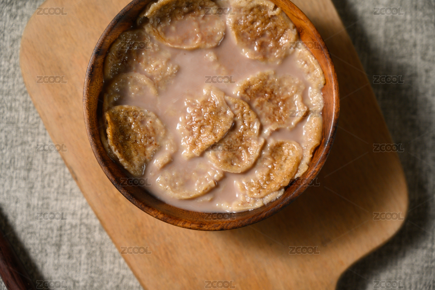 桌面上的碗里美味可口的牛奶荞麦麦片