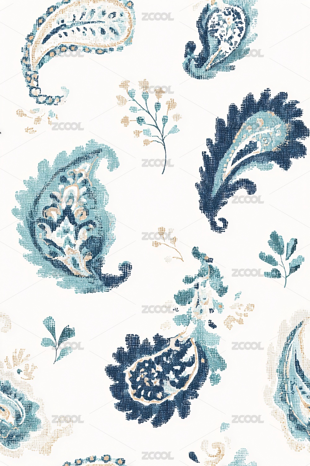 布艺,纹样,植物,叶片,蓝黄,配色,织物,纹理,装饰,现代