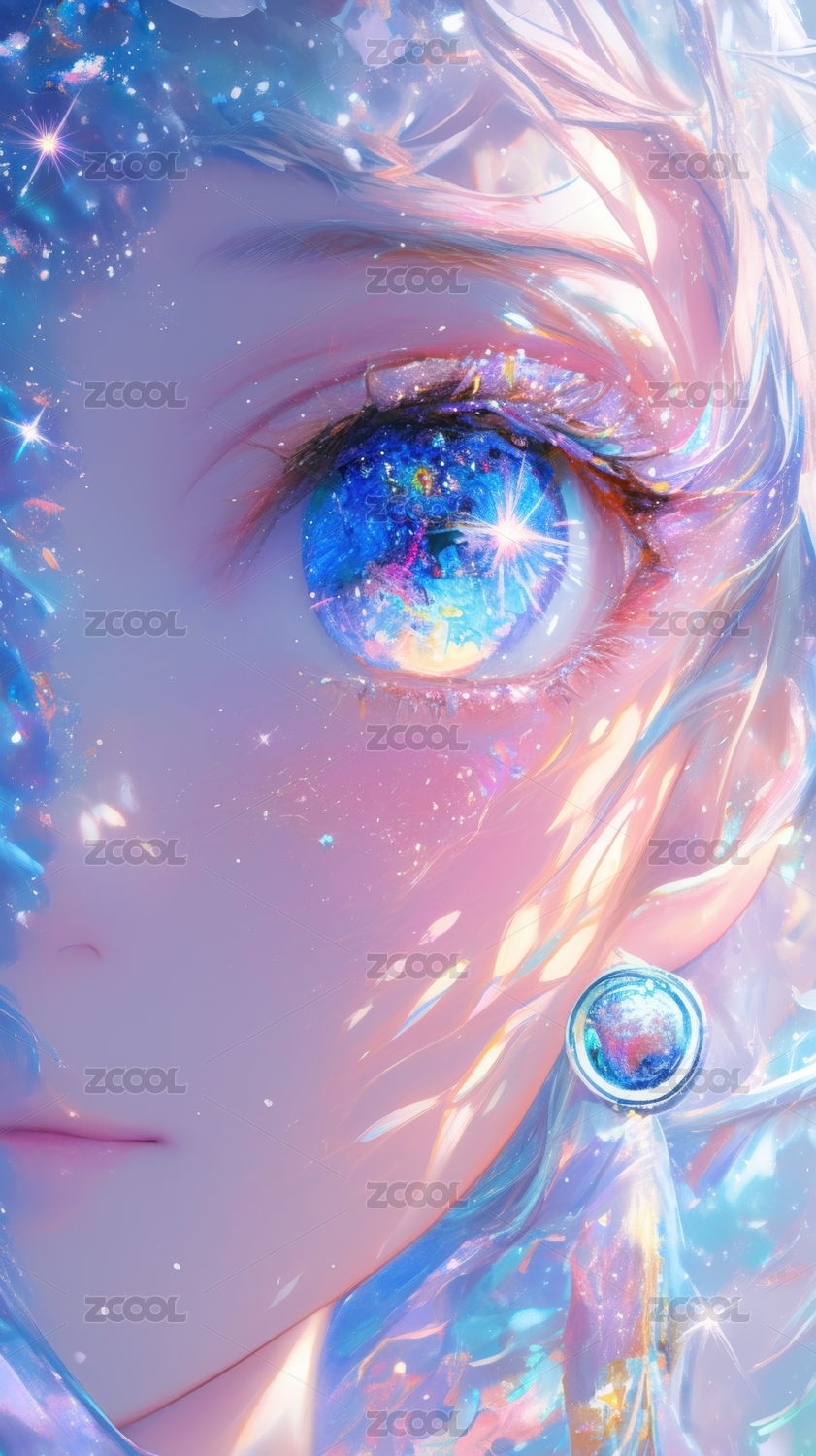 莲花水波蓝眼睛的美丽女孩幻想动漫风格