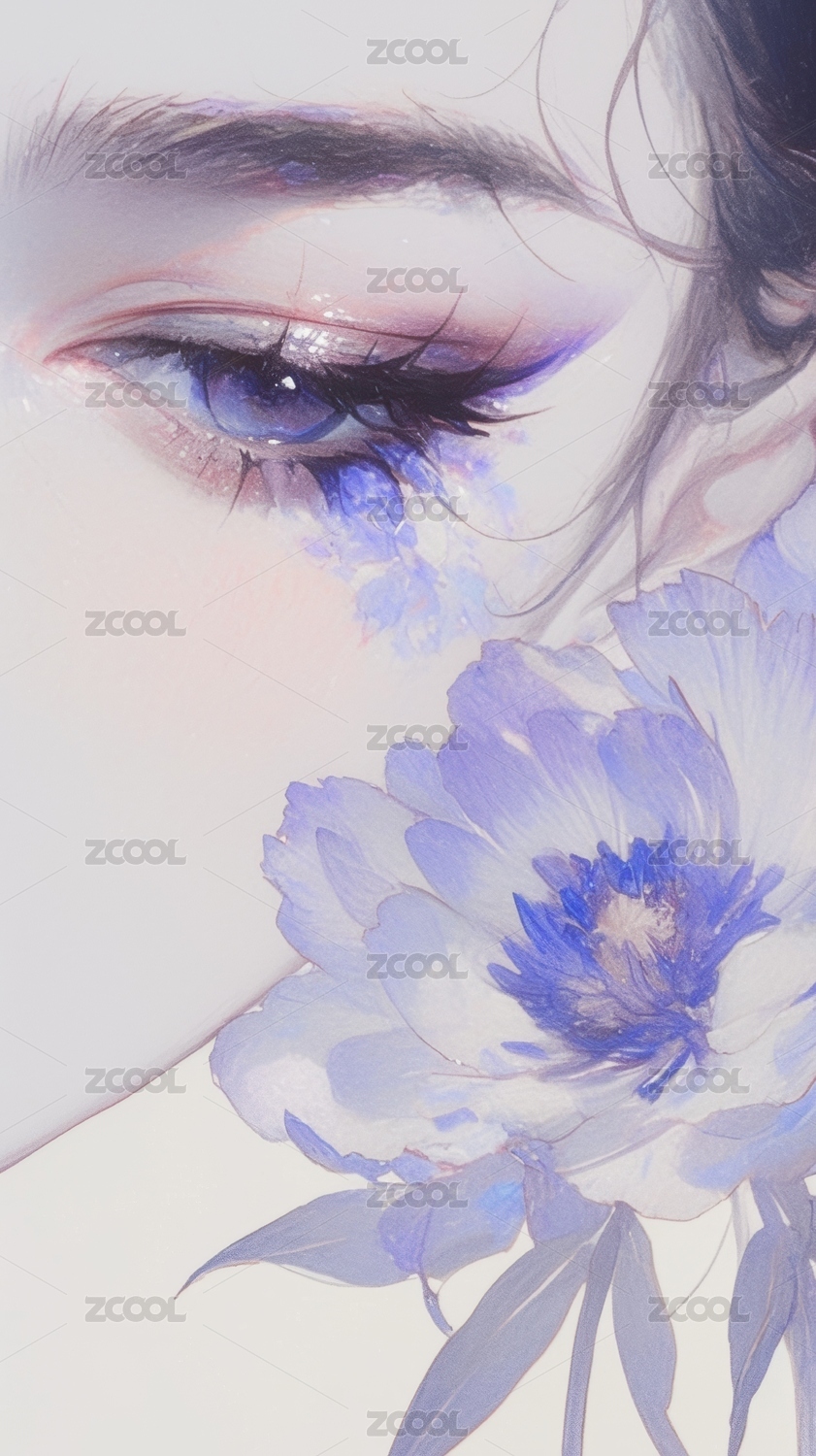 紫眸,玫瑰,手绘,动漫,眼妆,艺术,水彩,光影,睫毛,瞳孔