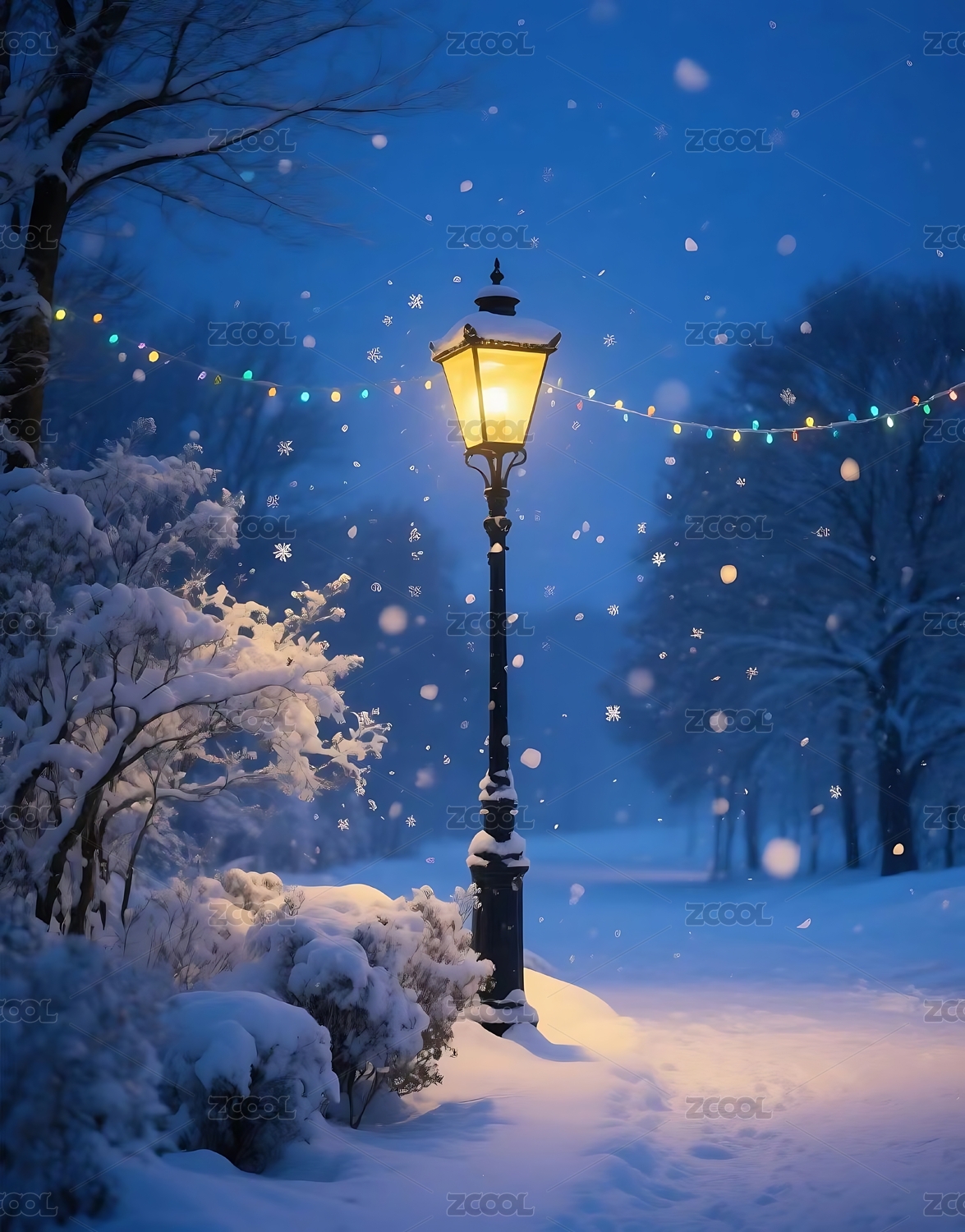 雪景,夜景,街道,路灯,建筑,灯光,冬季,下雪,宁静,温馨