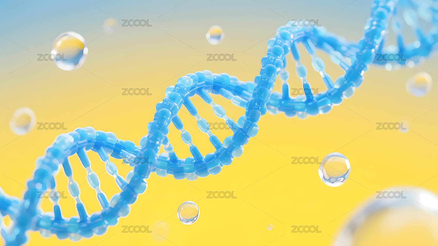 蓝色,黄色,简洁,科技,透明,明亮,DNA,双螺旋,气泡,生物