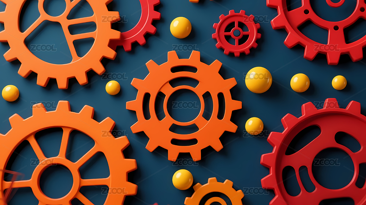 红色,蓝色,背景,科技,橙色,动态,圆点,齿轮,机械,排列